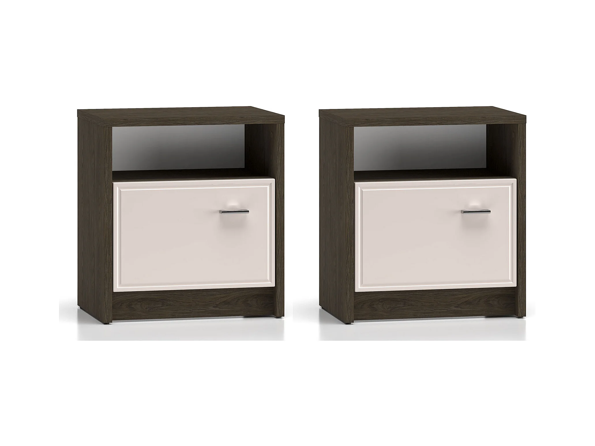 NACHTKONSOLE Avante Windmill Eiche dunkel / Cashmere Hochglanz 50 / 35 / 55cm (2er-Set)