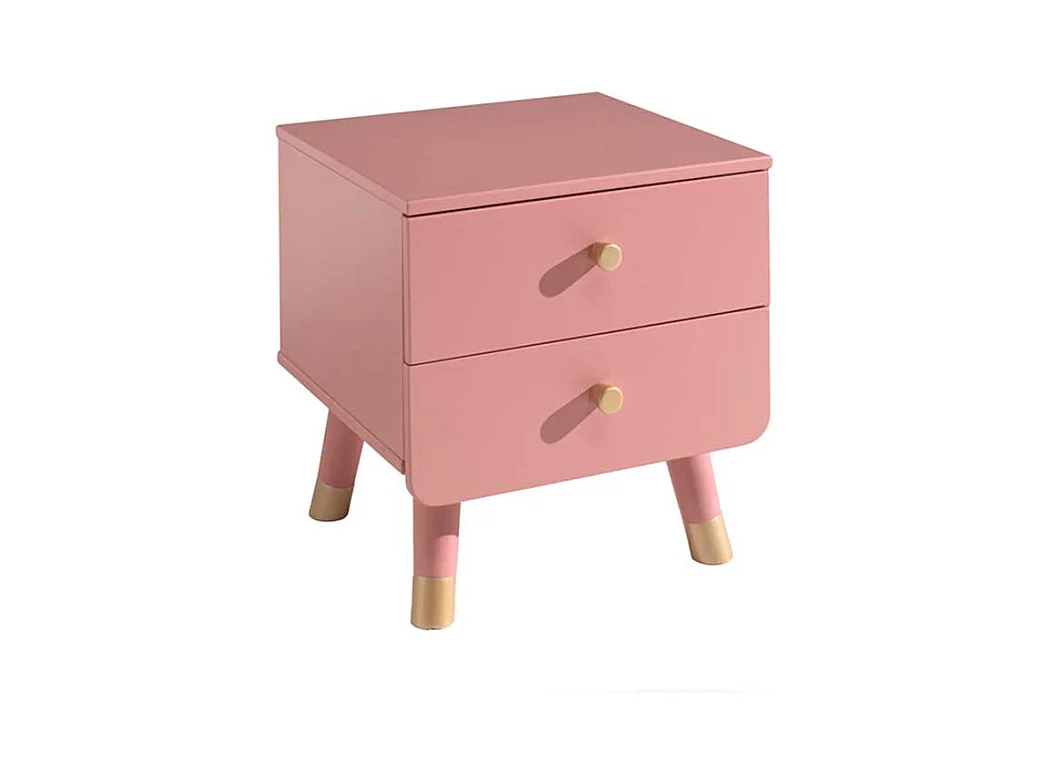 Nachtschrank in Rosa und Goldfarben zwei Schubladen