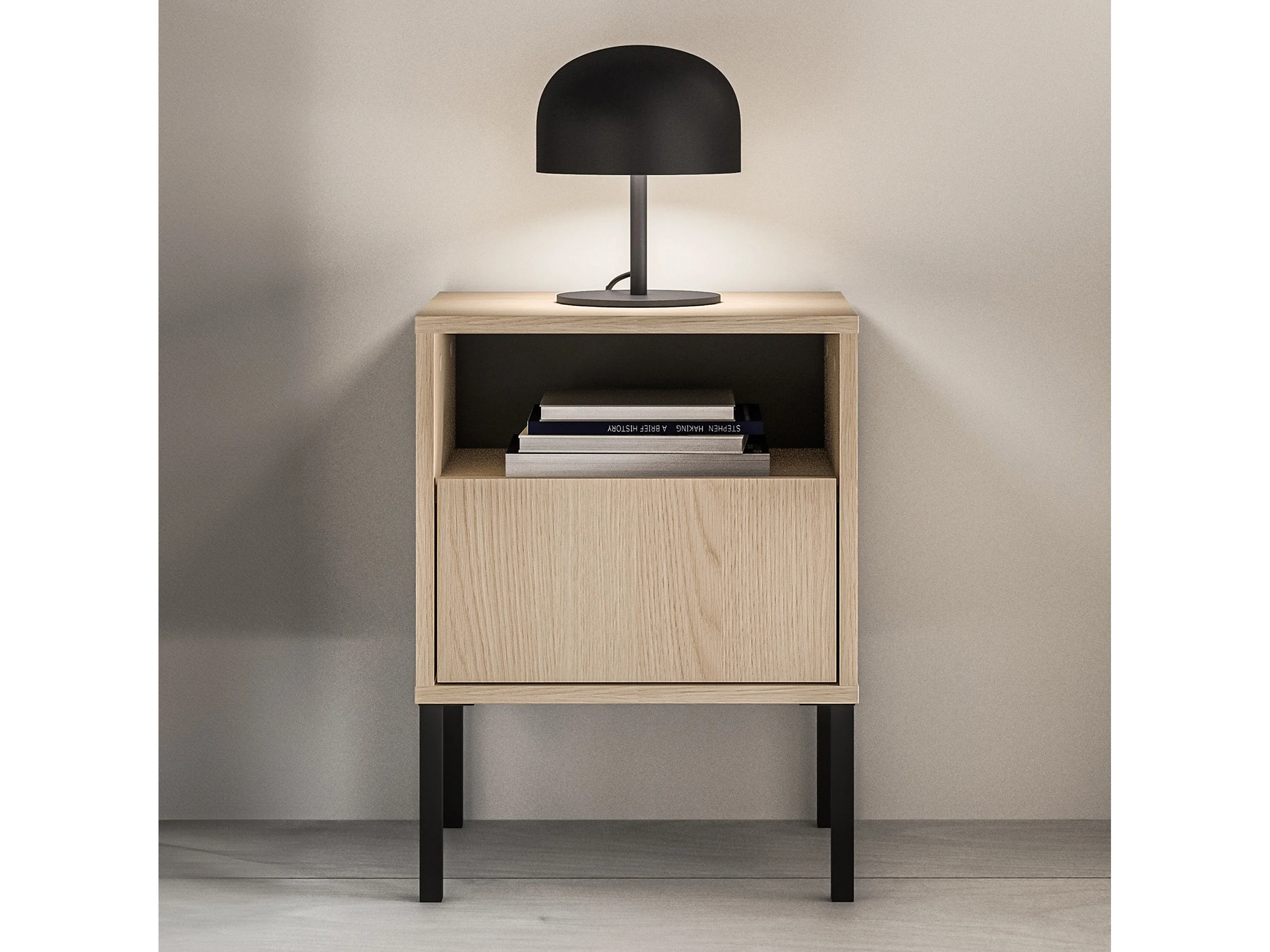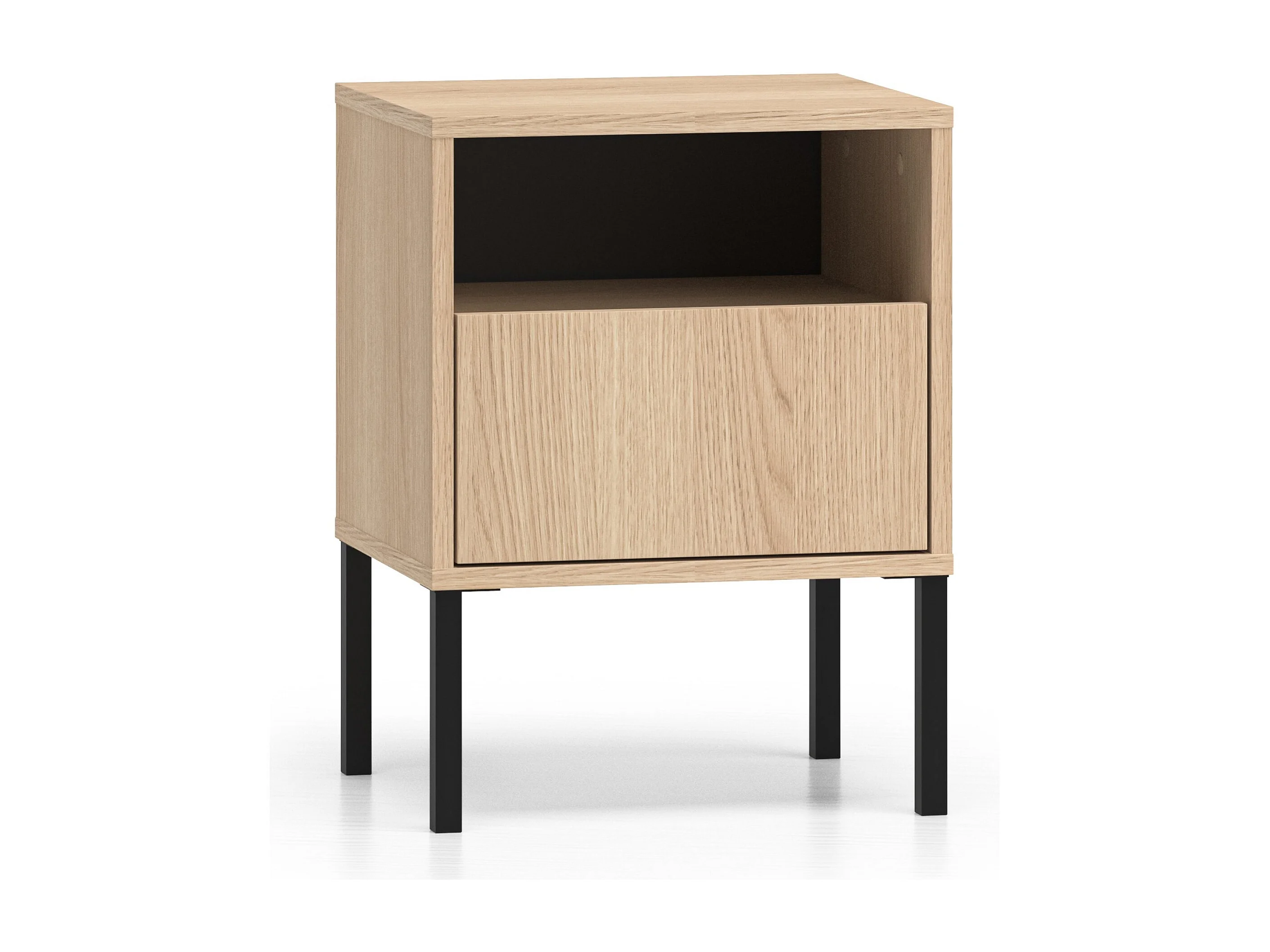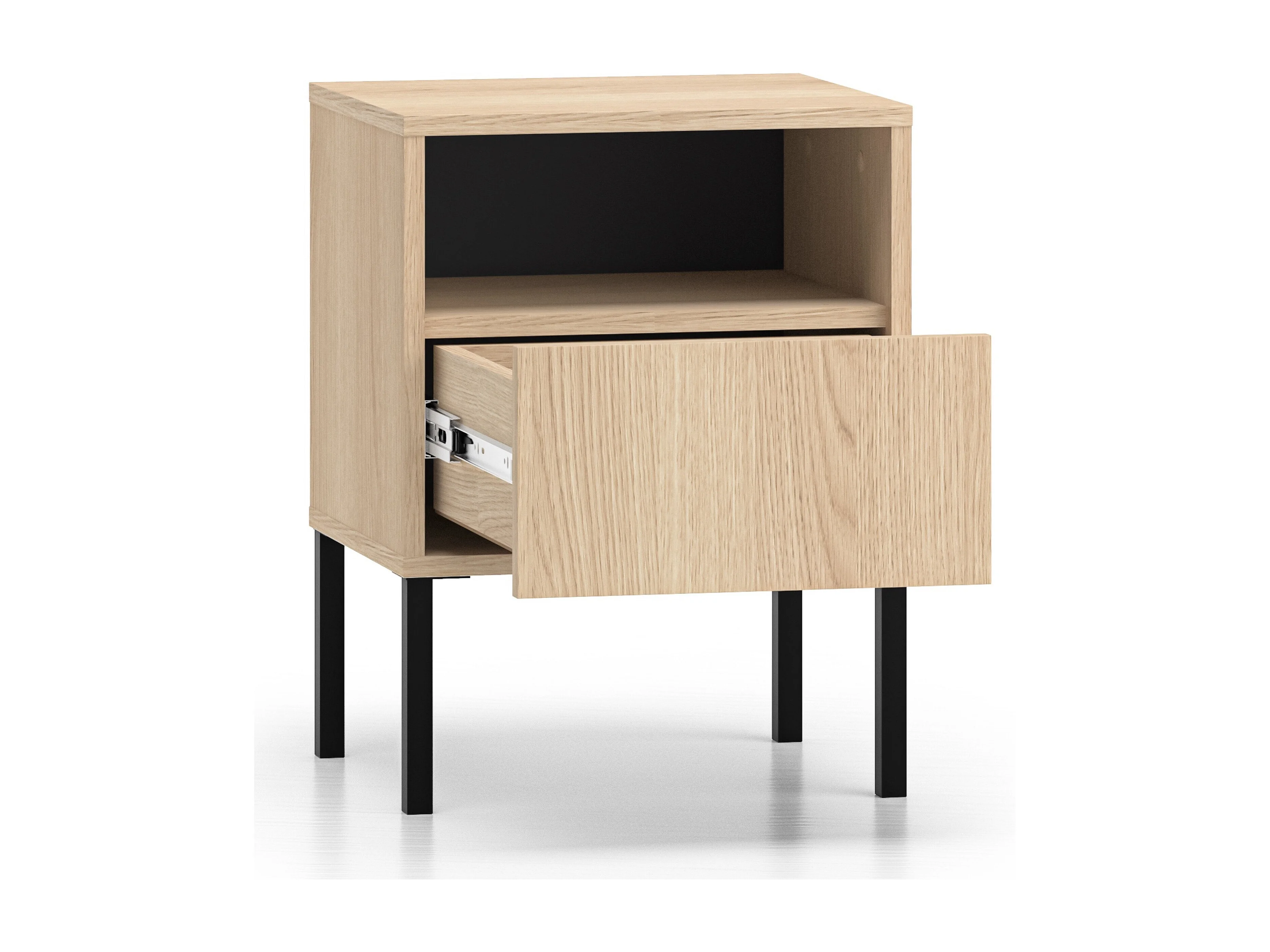 Nachttisch 1 Schublade mit offenem Fach - Eichenholzoptik - 40 cm - BARNEE