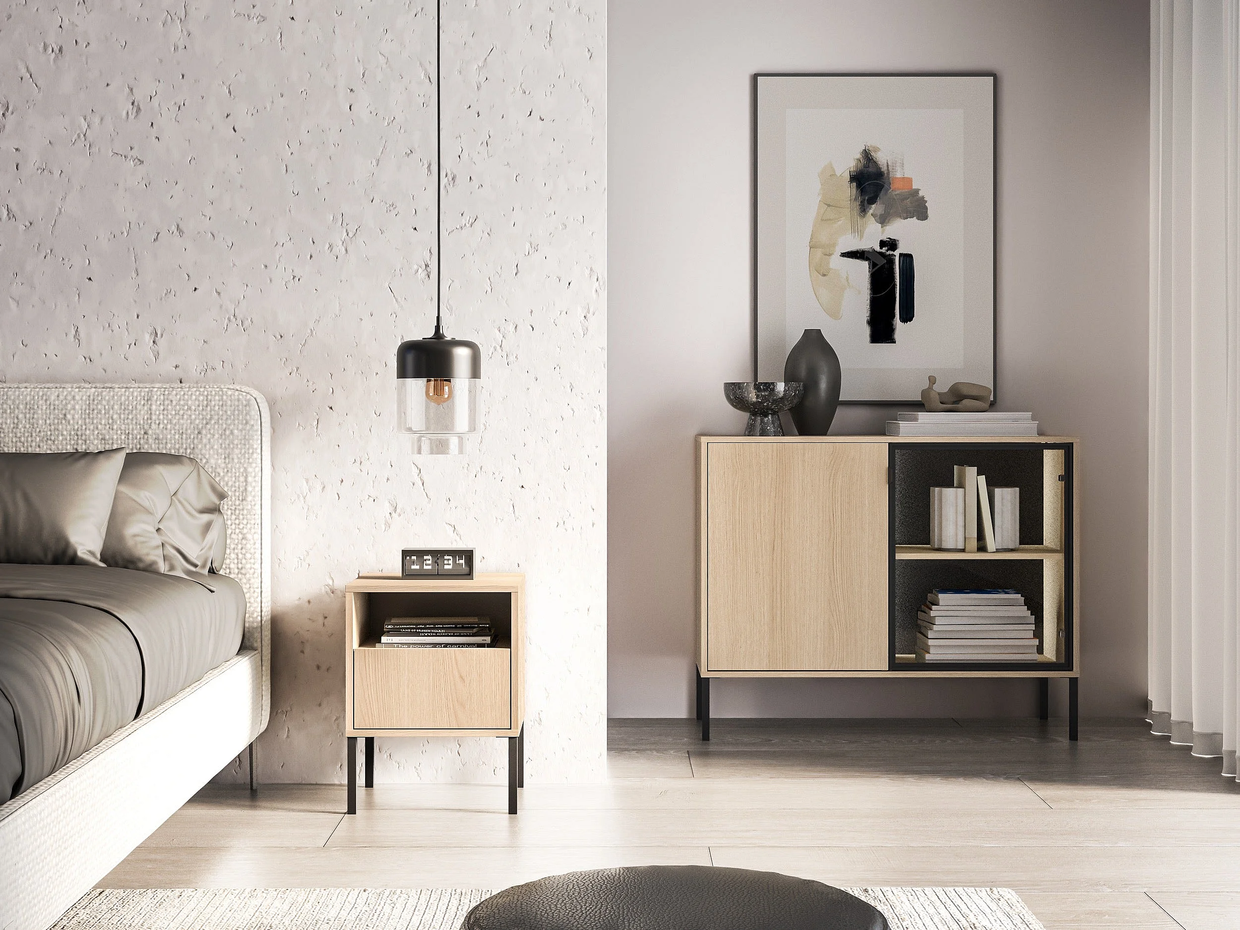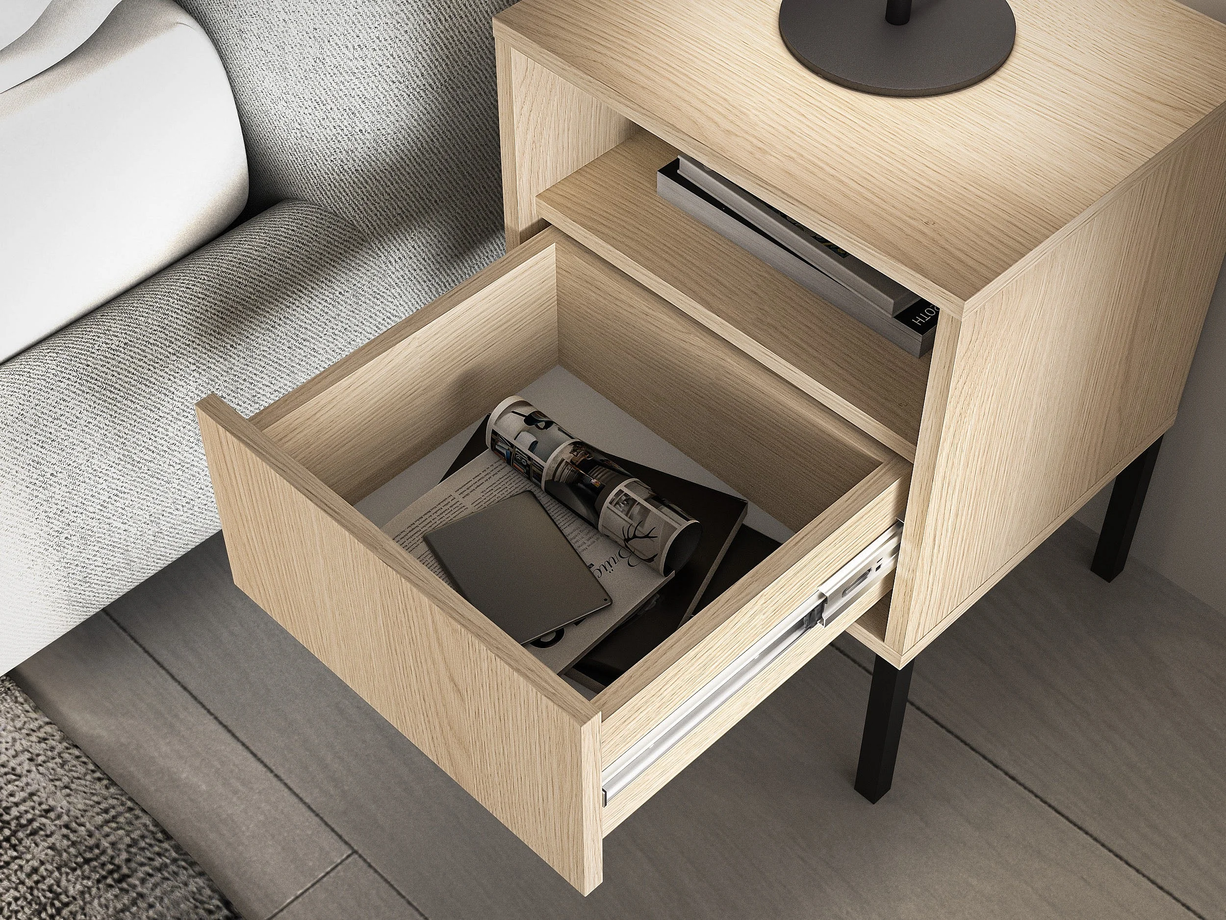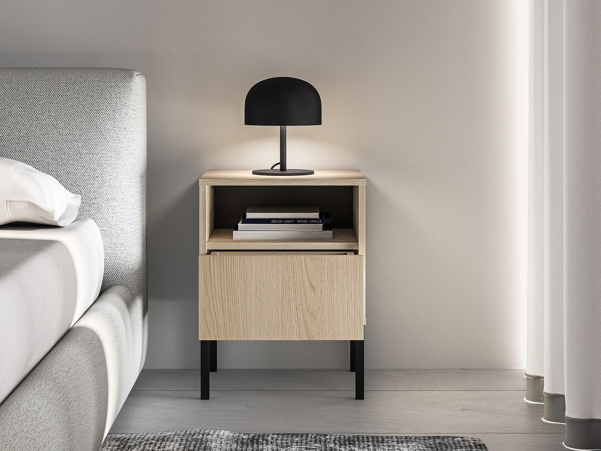 Nachttisch 1 Schublade mit offenem Fach - Eichenholzoptik - 40 cm - BARNEE