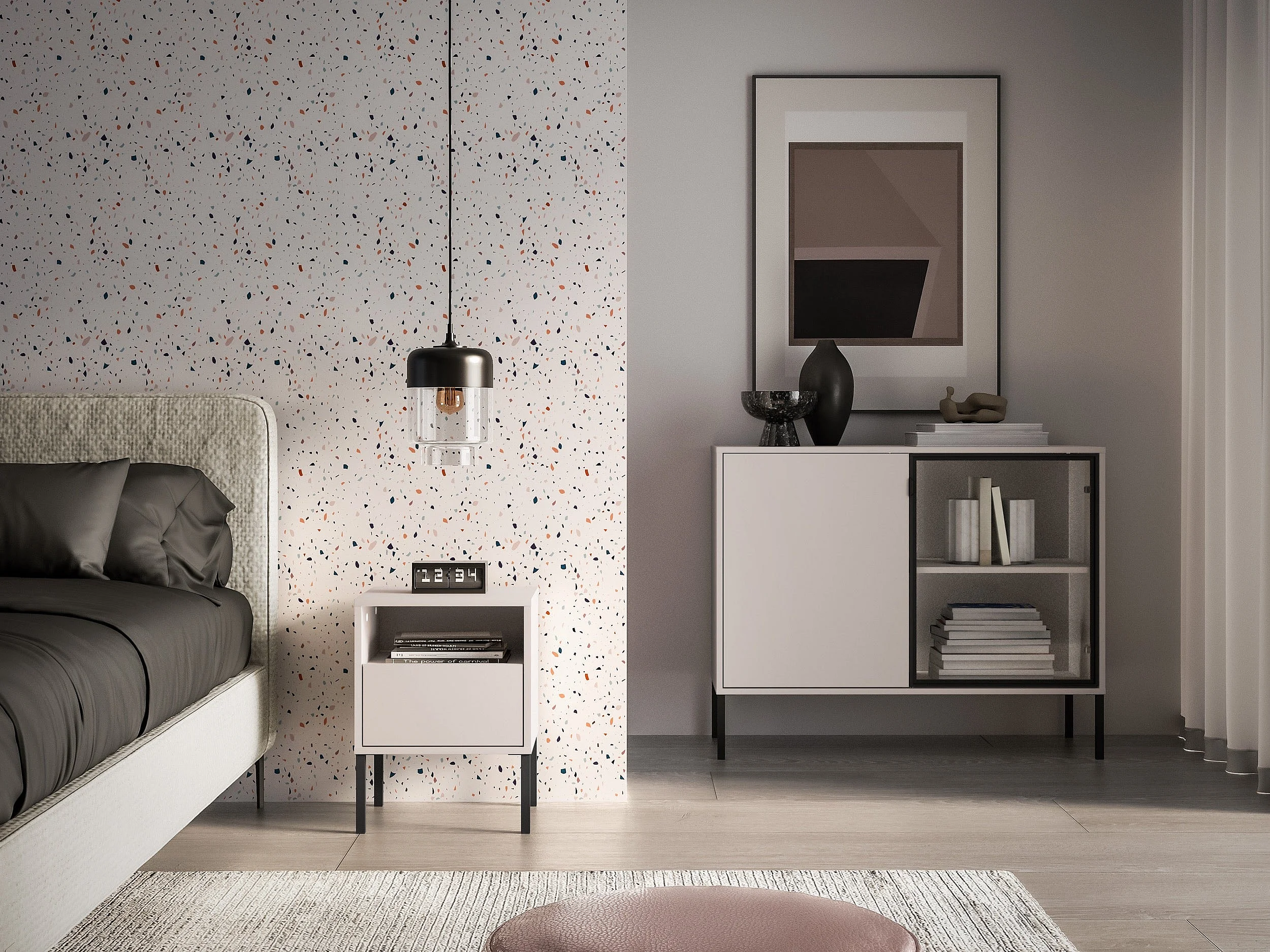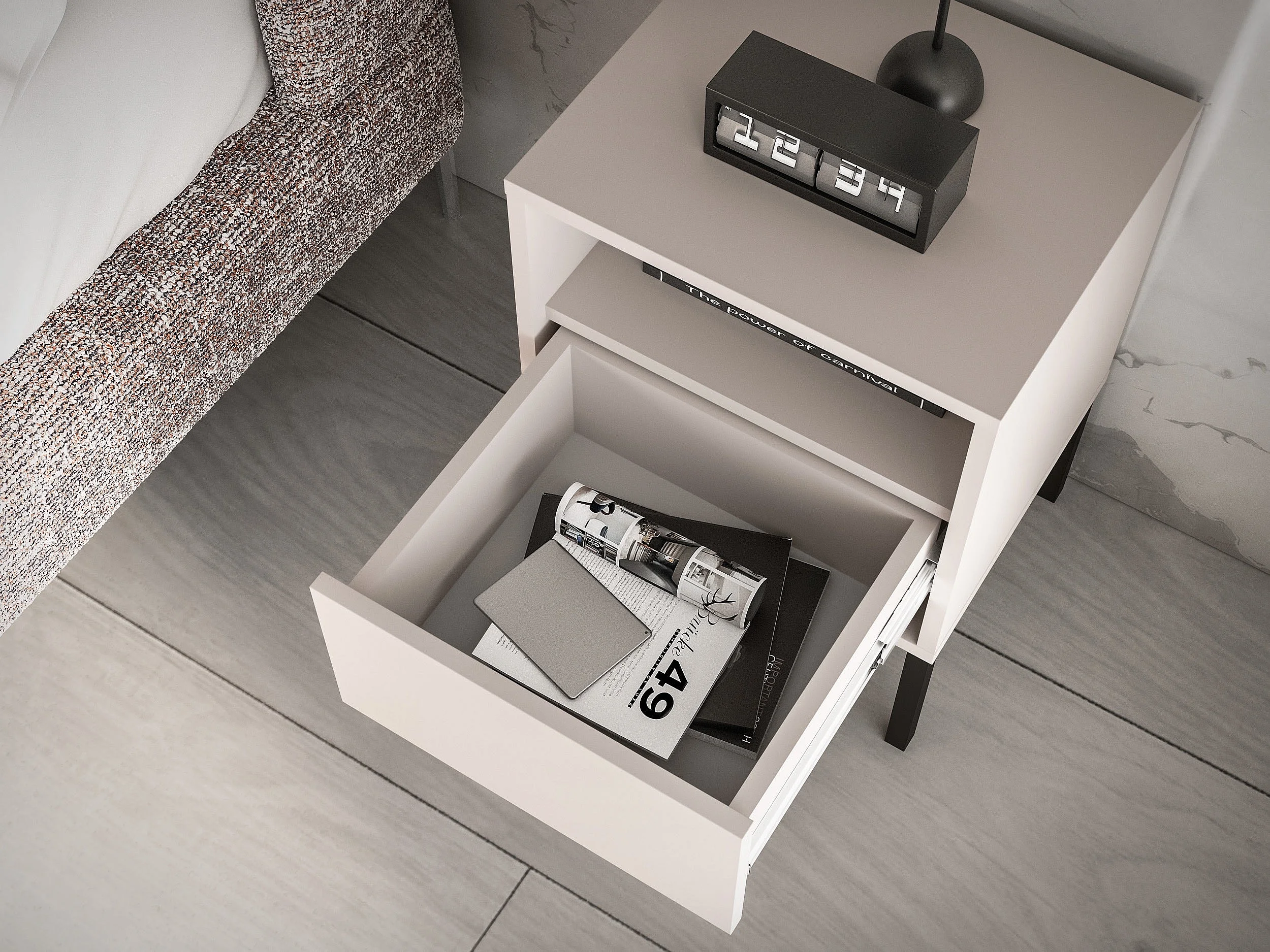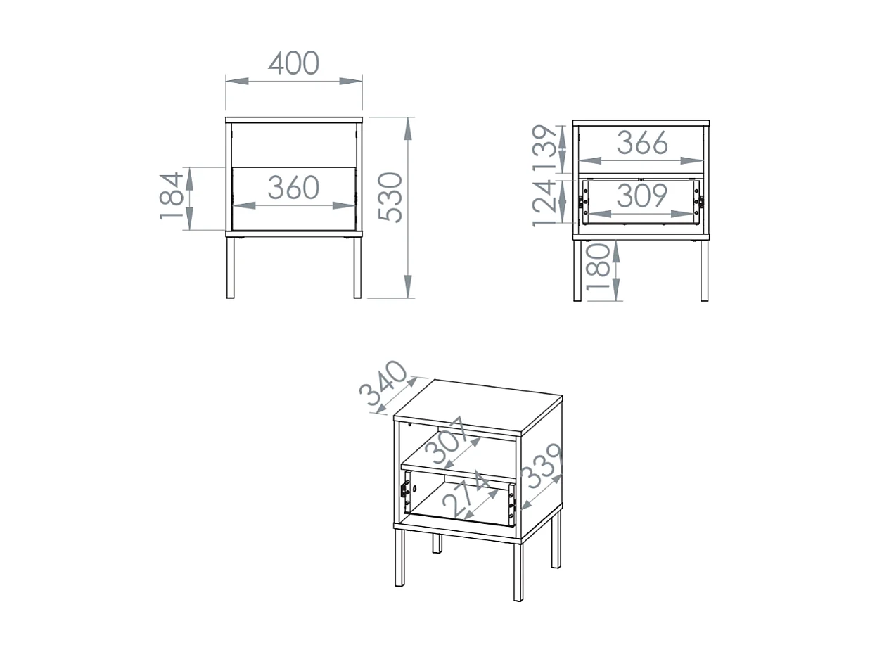 Nachttisch 1 Schublade mit offenem Fach - Kaschmir - 40 cm - BARNEE