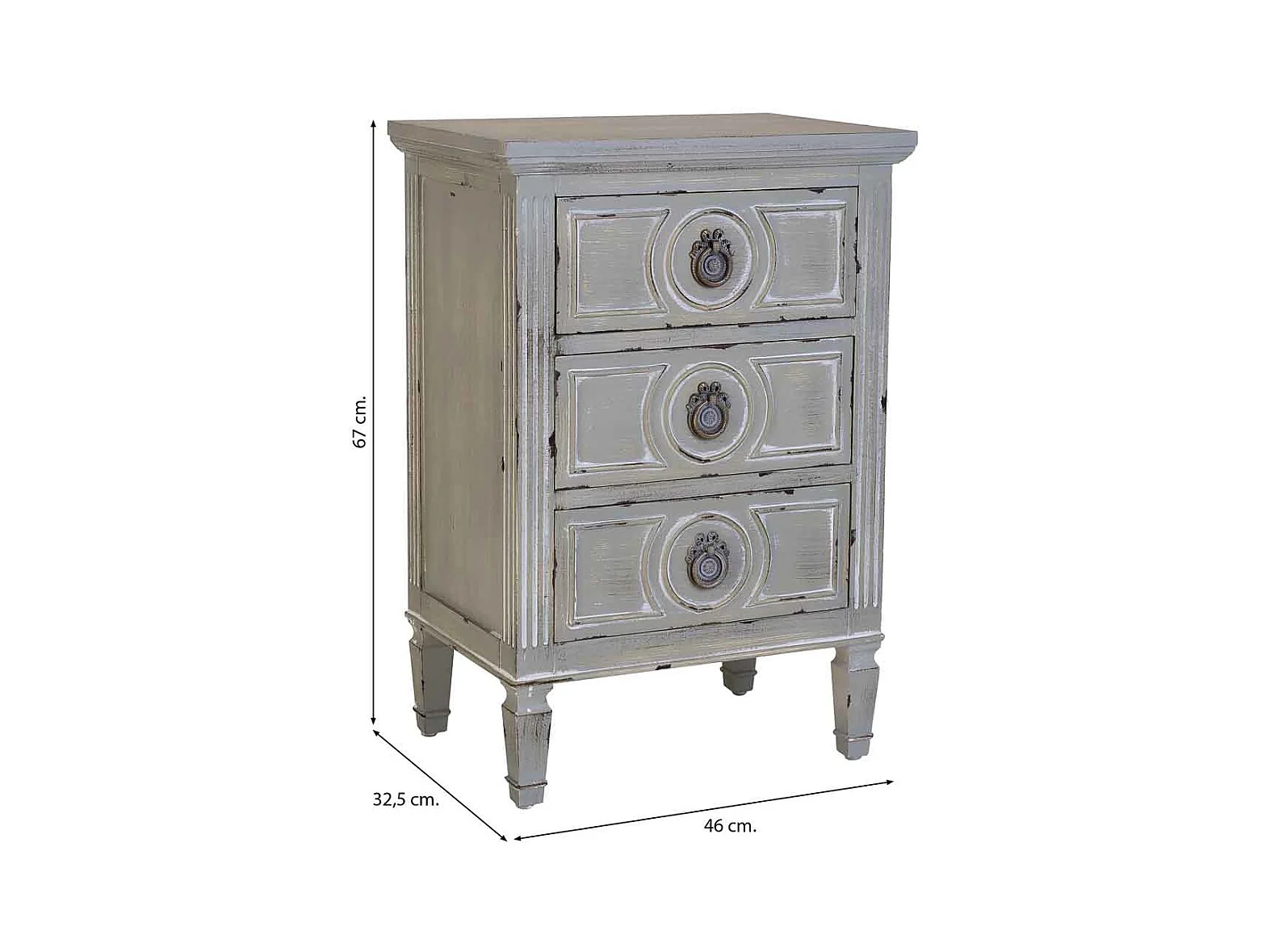 Nachttisch aus Holz mit drei Schubladen grau 46x32,5x67h cm