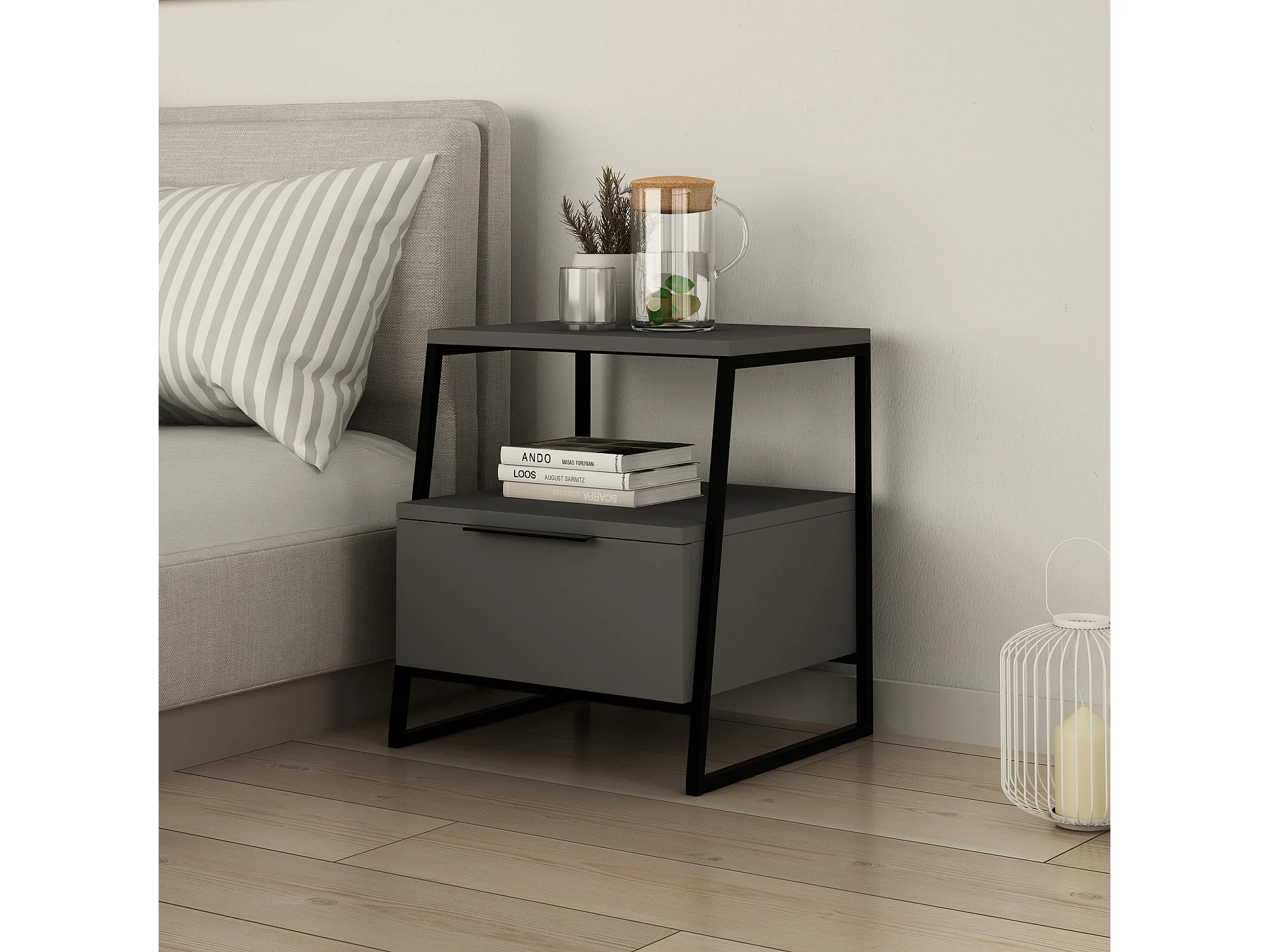 Nachttisch aus Holz "Pal" - 45 x 40 x 50 cm - Anthrazitgrau