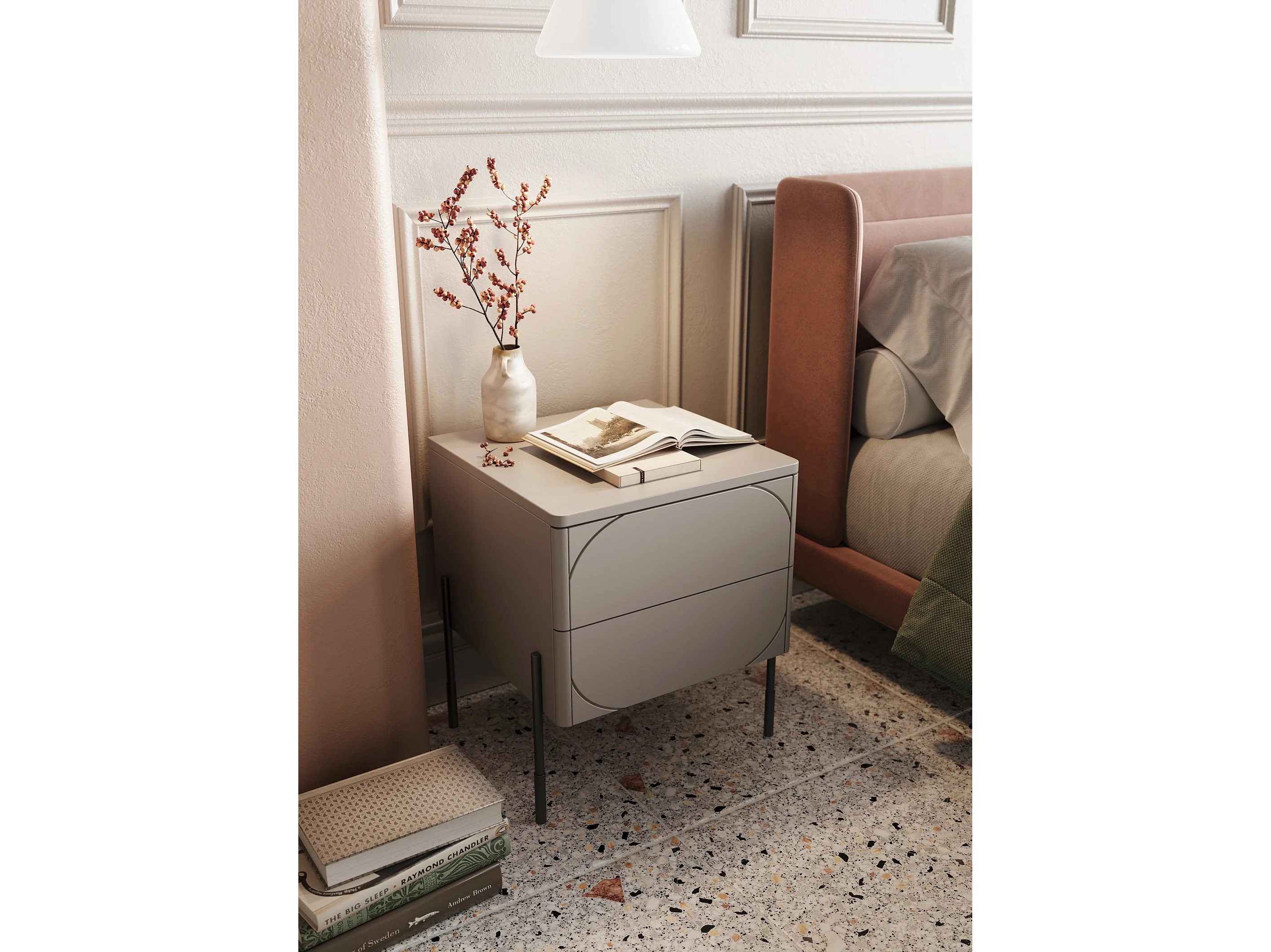 Nachttisch aus Kaschmir mit 2 Schubladen, 49 x 55 cm