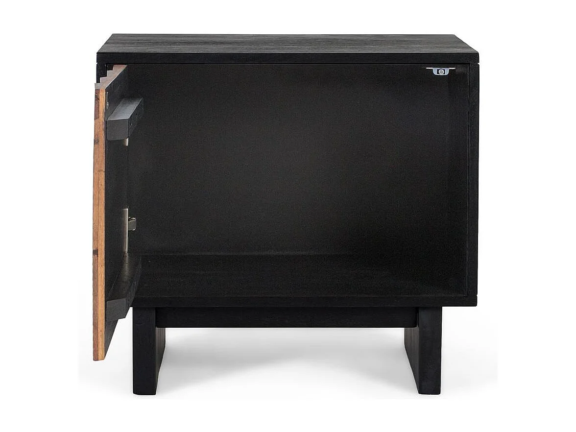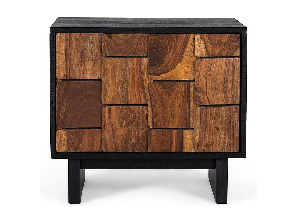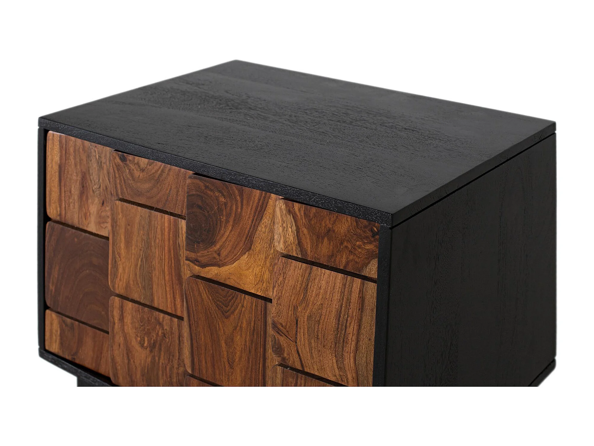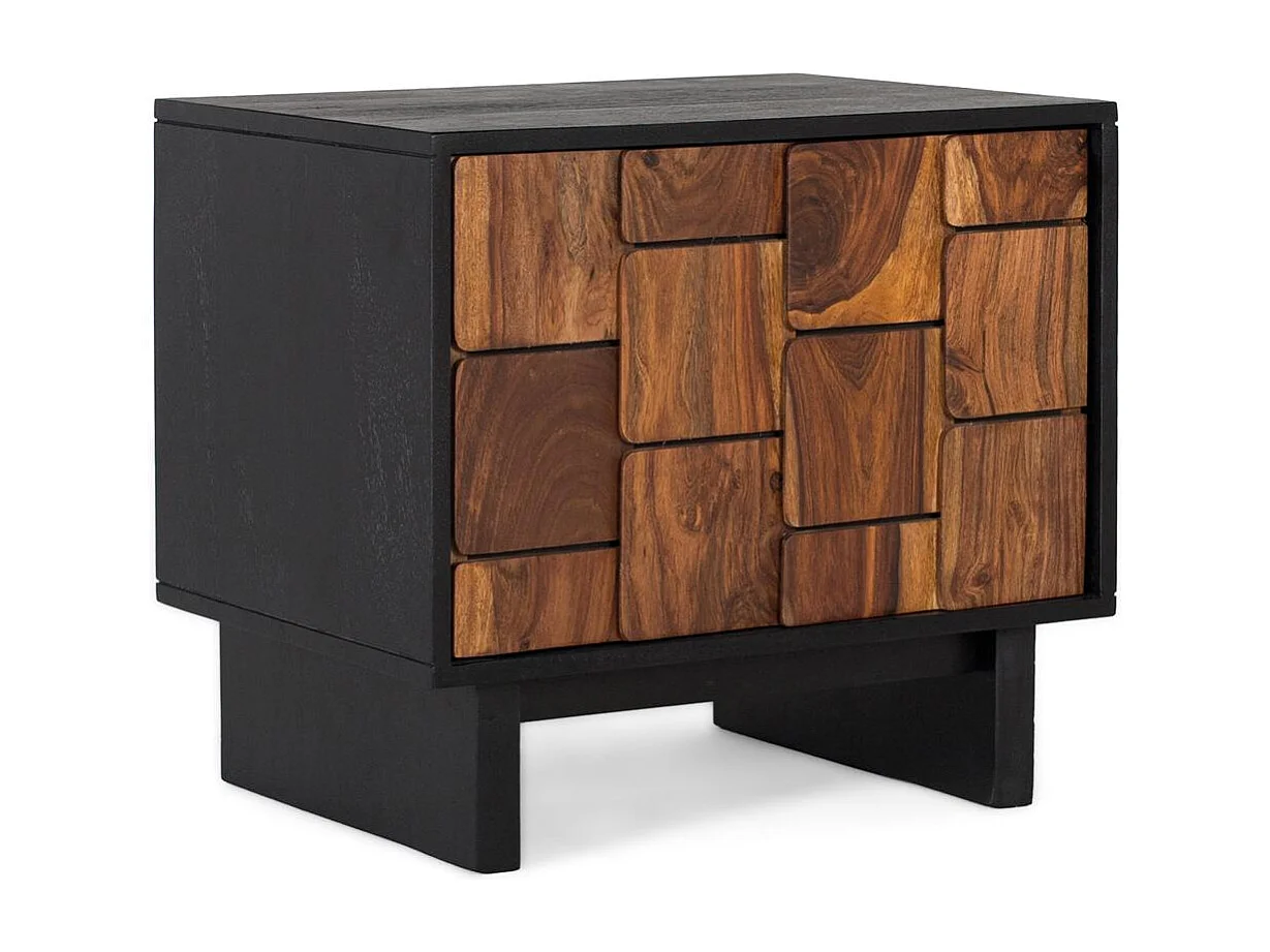Nachttisch aus Mangoholz und Sheesam mit dreidimensionalem Effekt
