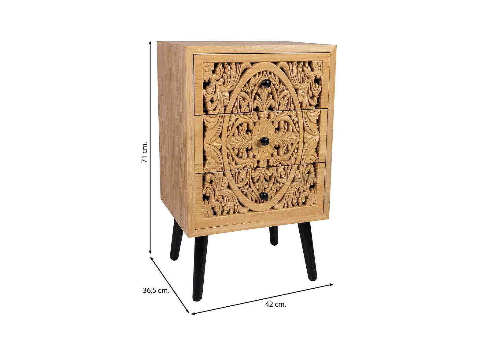 Nachttisch aus schwarzem Holz und Metall, 44x35x76