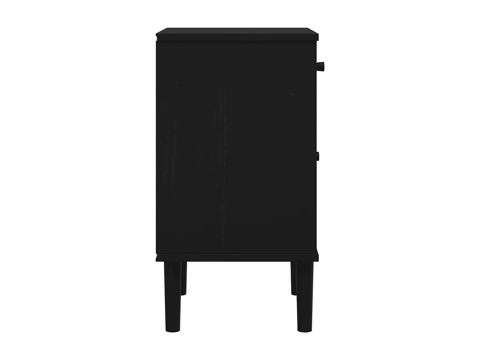 Nachttisch-Beistelltisch SENJA Rattan-Look Schwarz 40x35x65 Massivholz Kiefer SHL52046