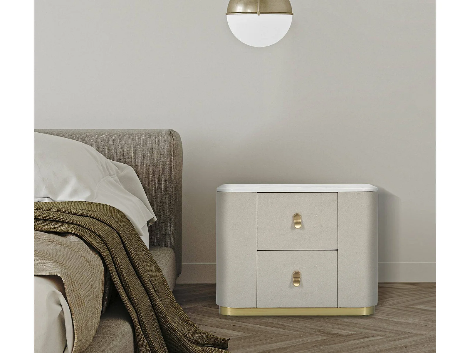 Nachttisch Christov, Niedrige Kommode, Tisch, Multifunktionaler Nachttisch, 60x40 h47 cm, Creme und Gold