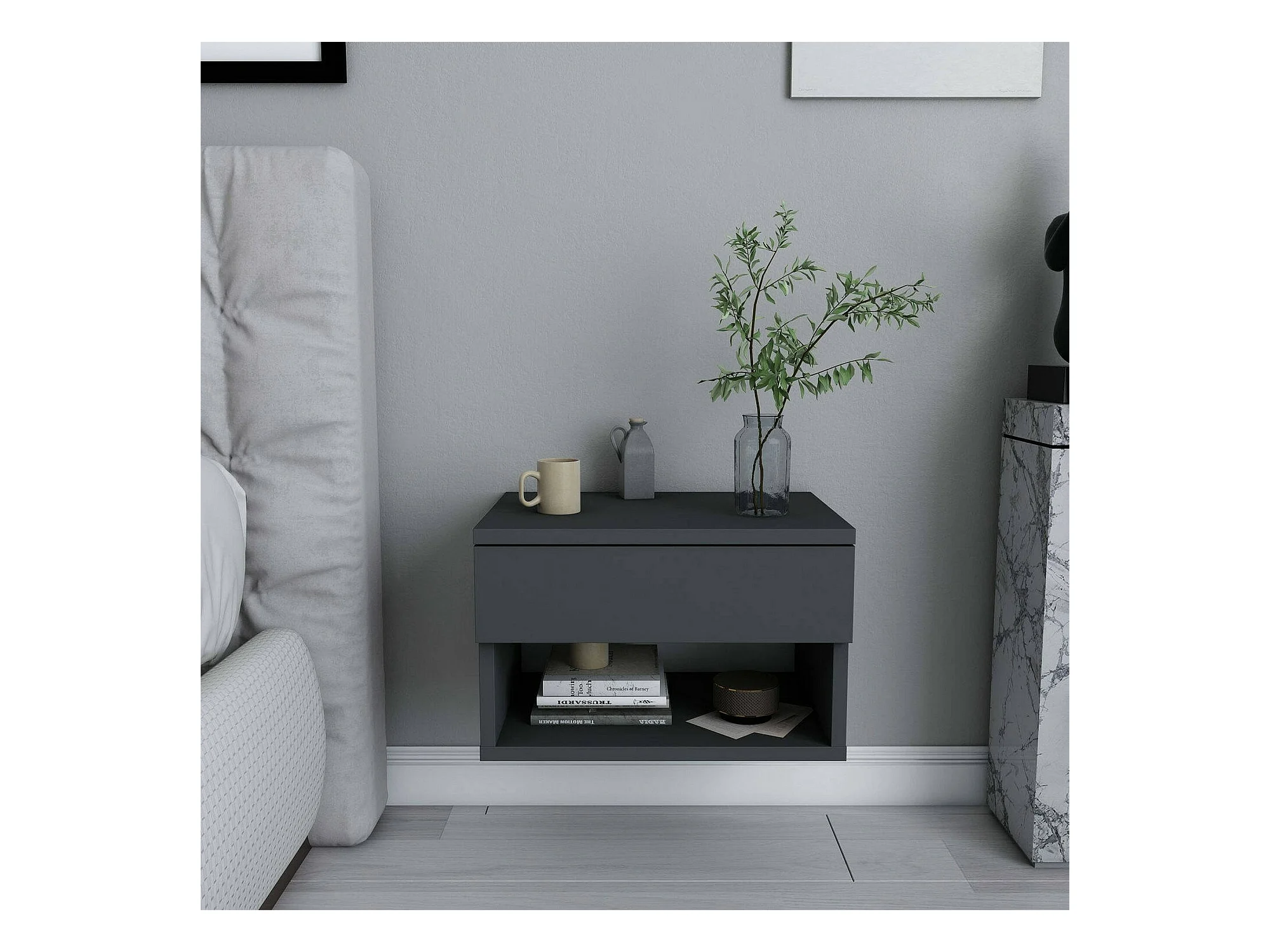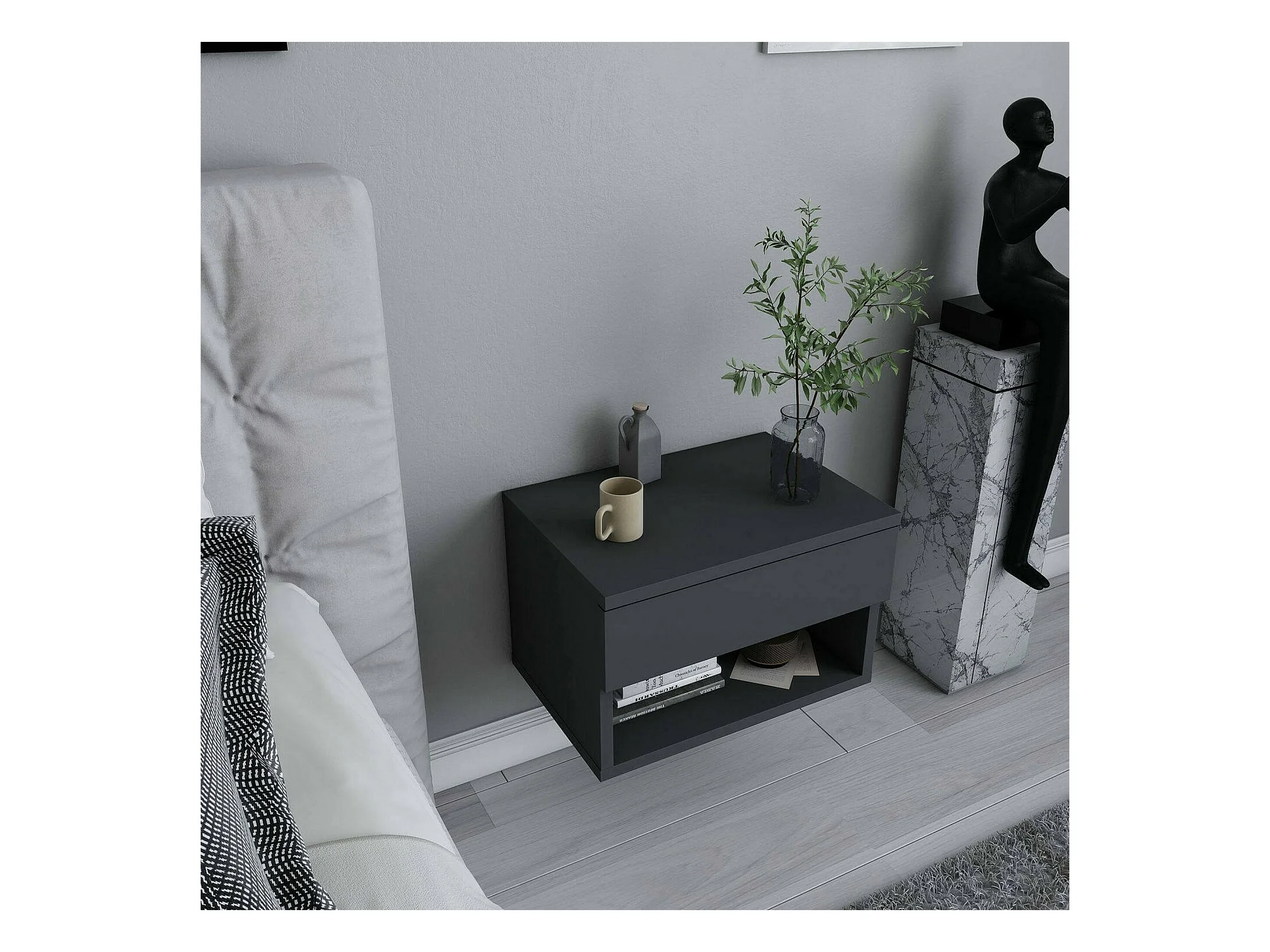 Nachttisch Dperisa, Niedrige Kommode, Tisch, Multifunktionaler Nachttisch, 45x29h32 cm, Anthrazit
