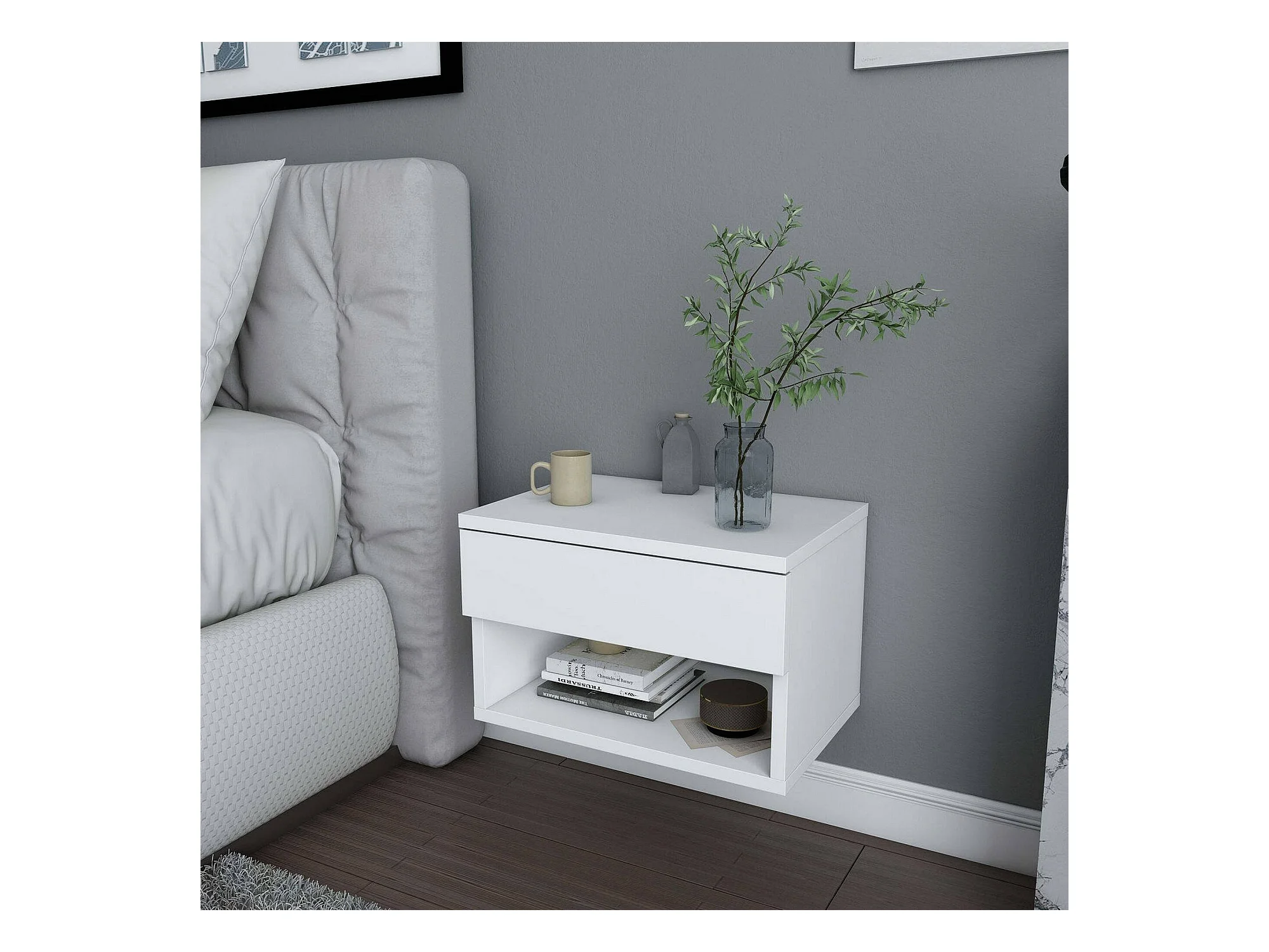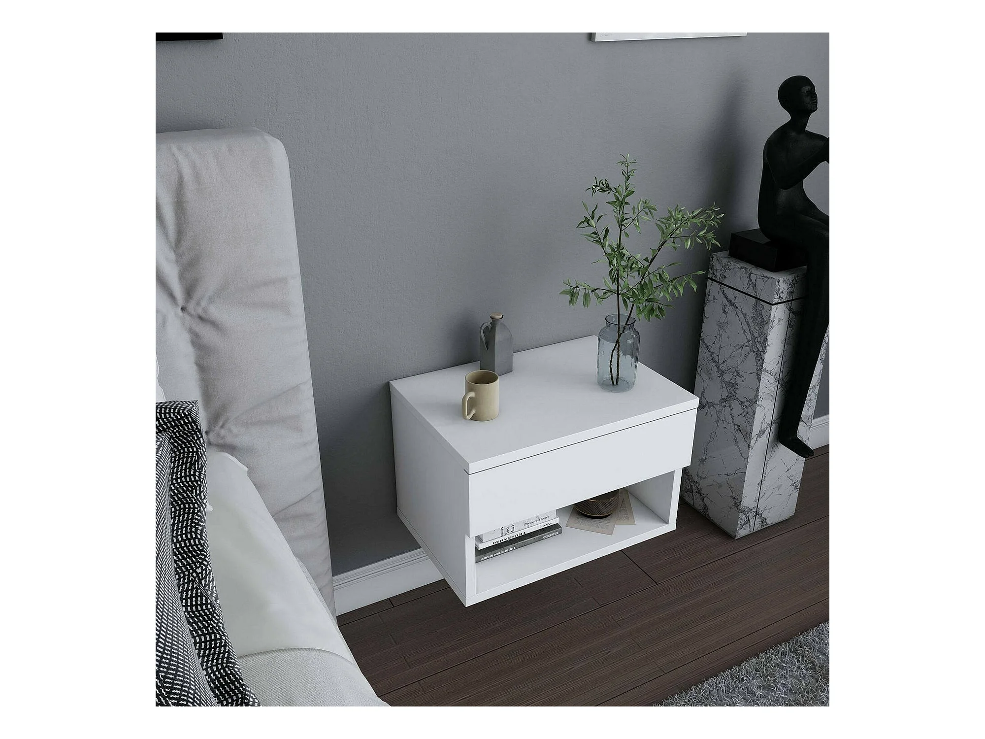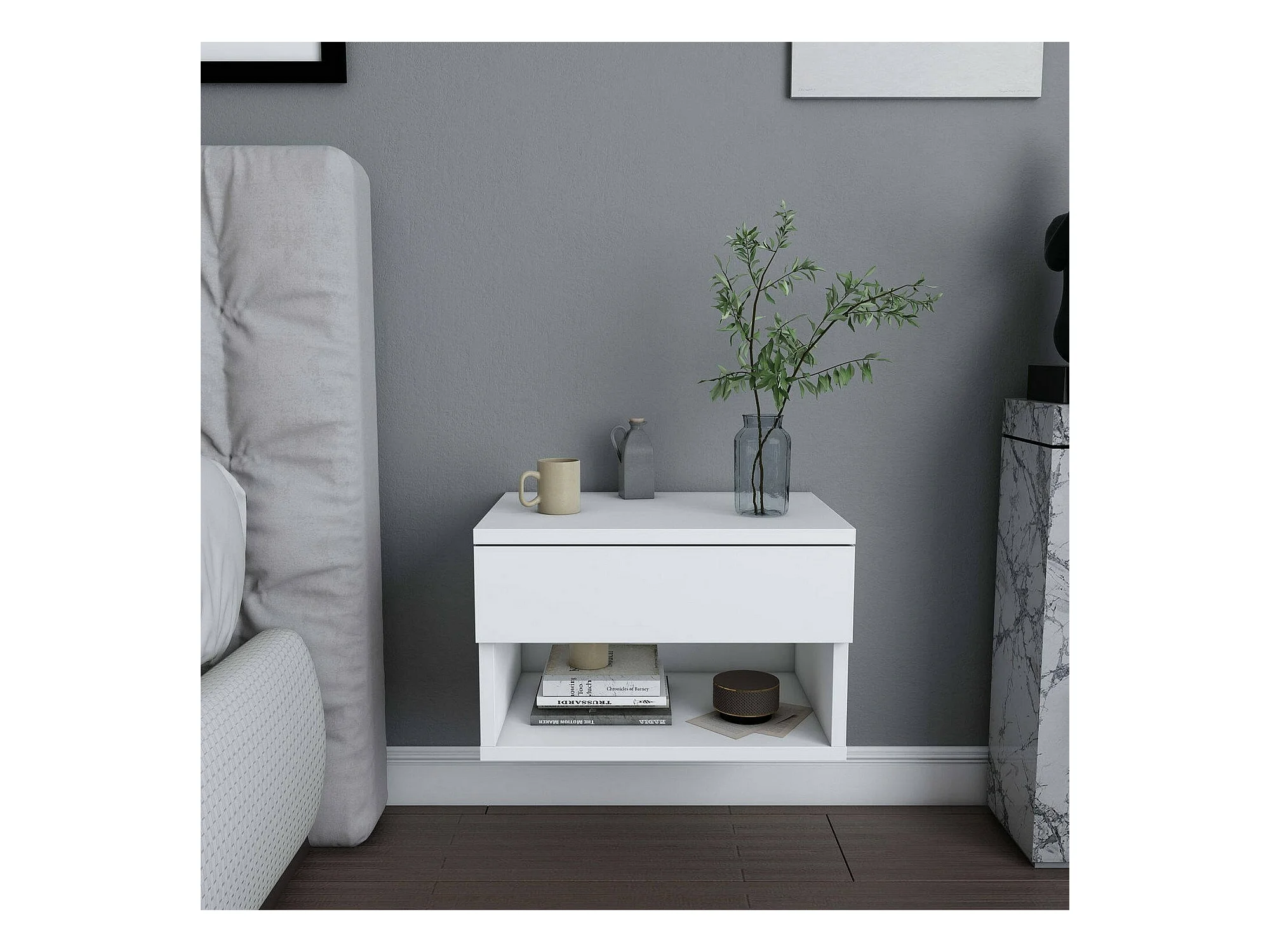 Nachttisch Dperisa, Niedrige Kommode, Tisch, Multifunktionaler Nachttisch, 45x29h32 cm, Weiß