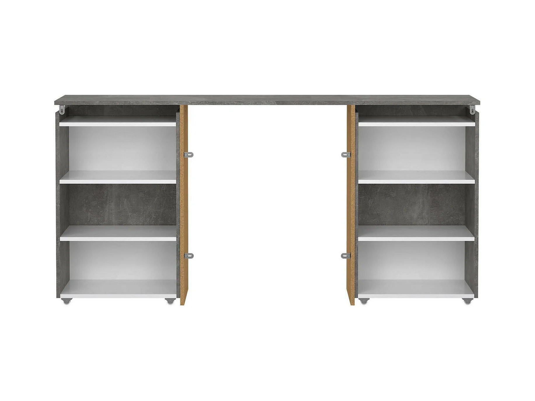 Nachttisch Drot, Niedrige Kommode, Tisch, Multifunktionaler Nachttisch, 165x26 h80 cm, Zement und Weiß