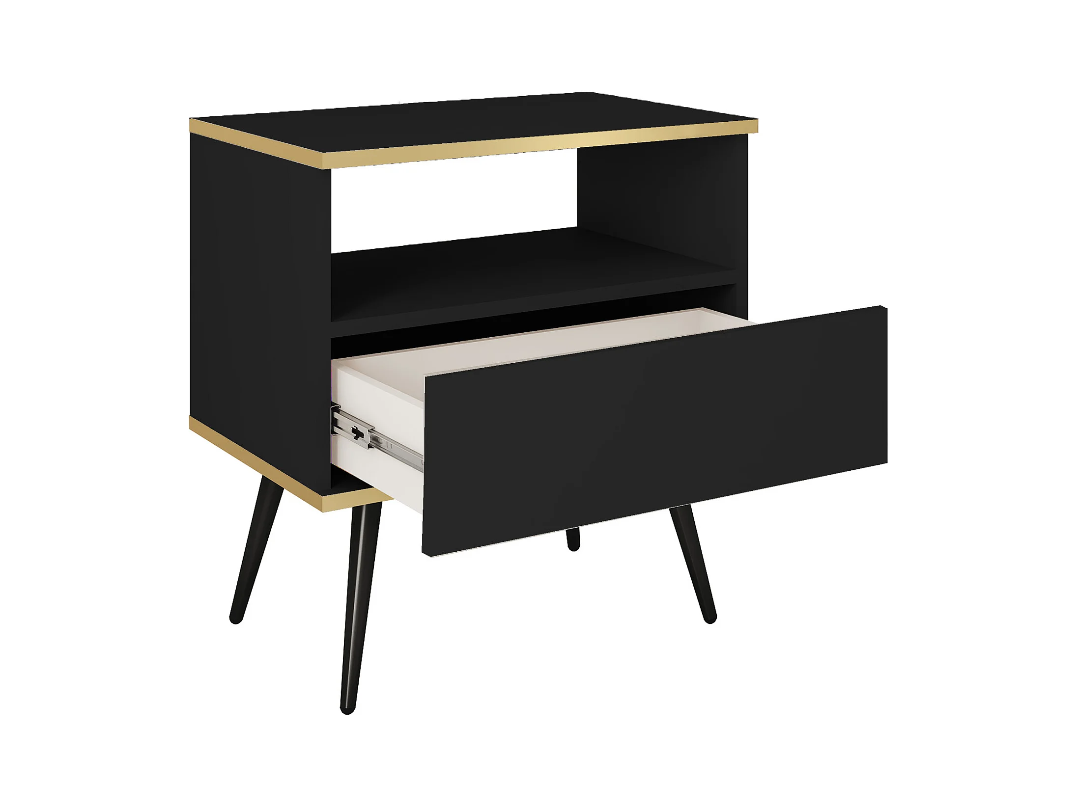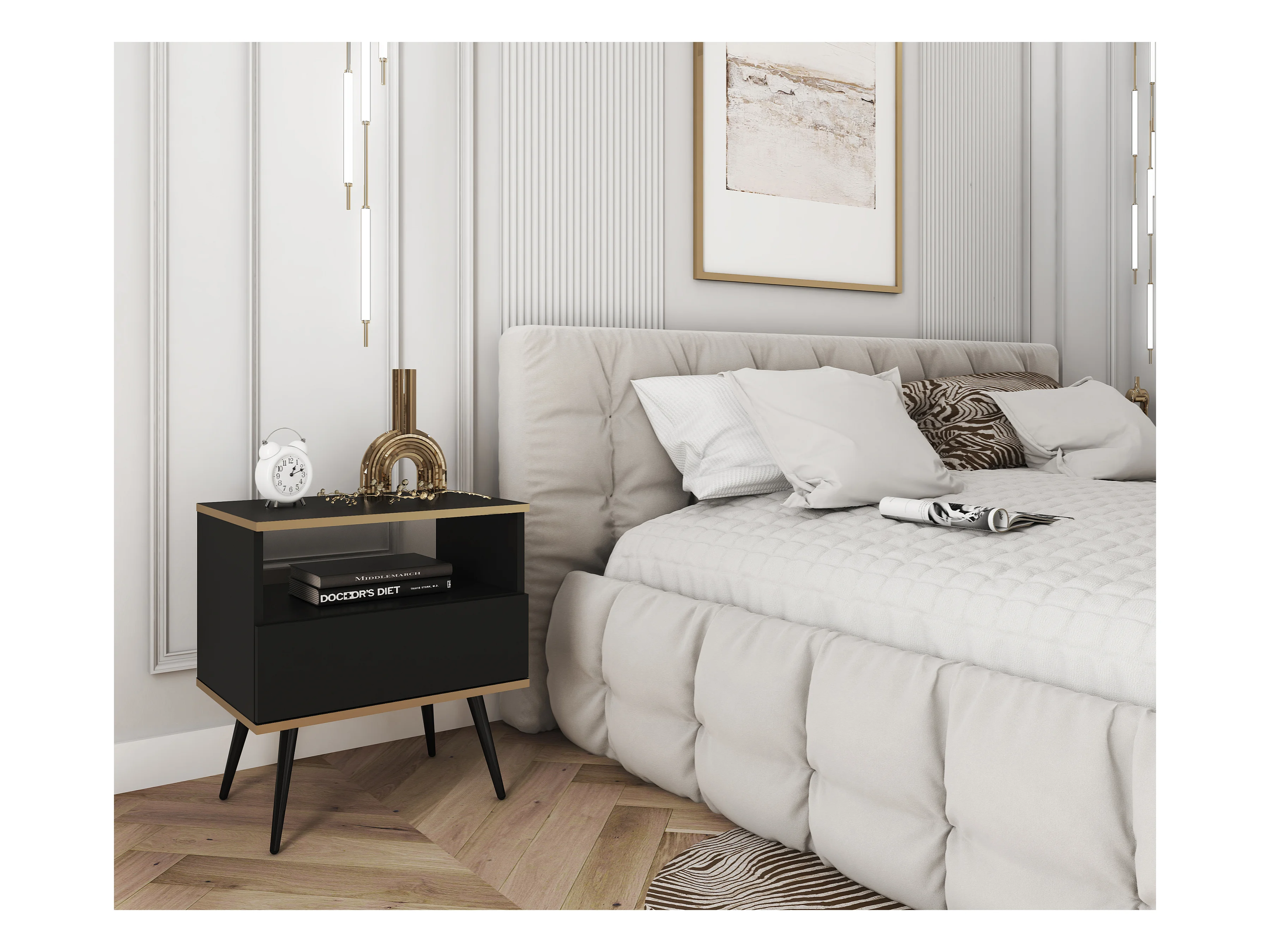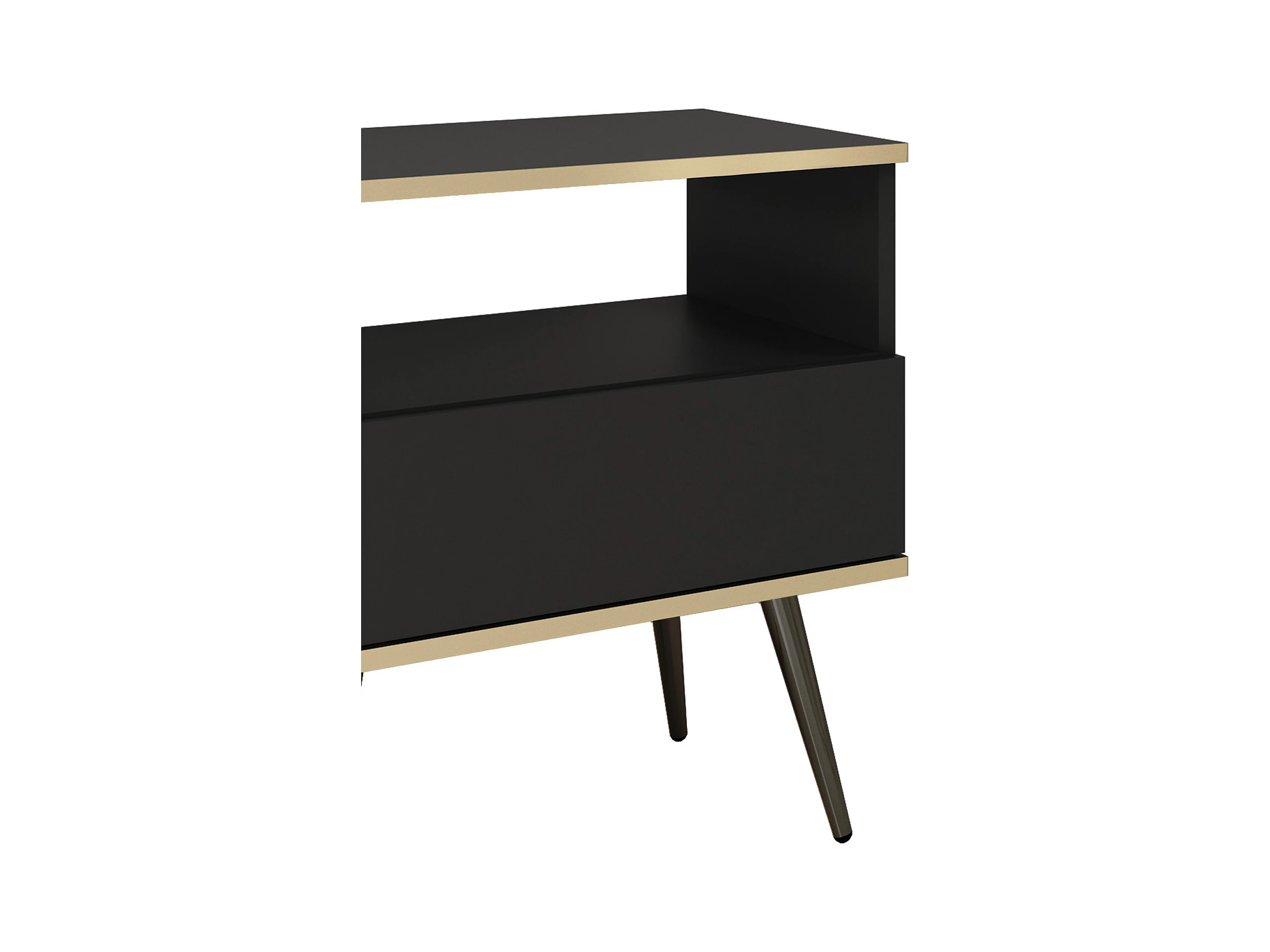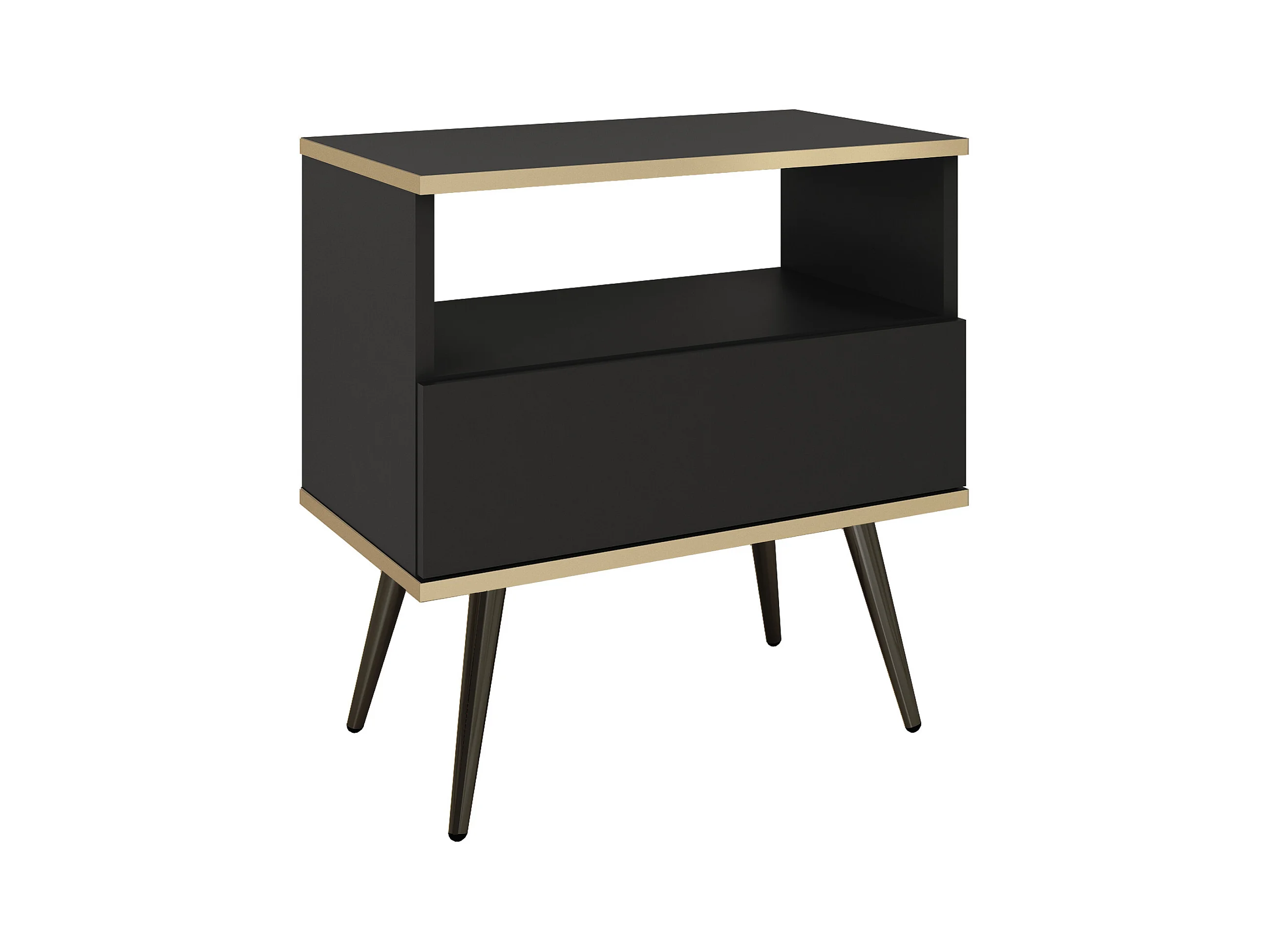 Nachttisch Farbe: Schwarz Mit Schublade Und Offenem Fach 59x54x39 cm Laminierte, Kratzfeste Platte Metallbeine in Farbe: Schwarz, Push-to-Open-System