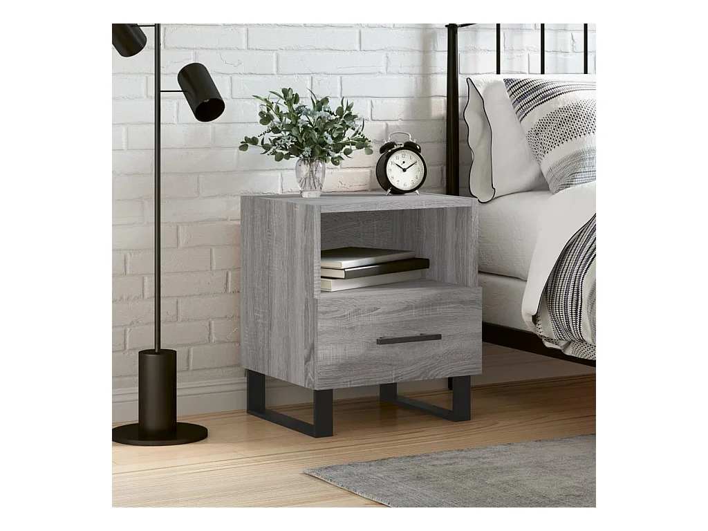Nachttisch Grau Nachtschrank Sonoma 40x35x47,5 cm Holzwerkstoff -RN98035