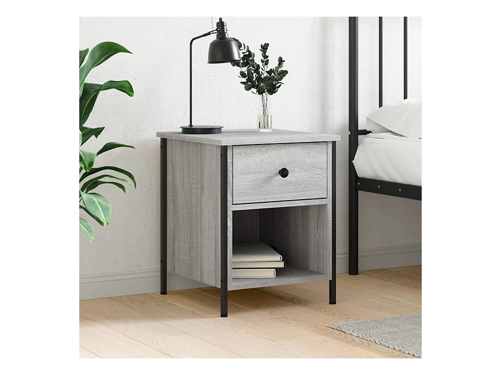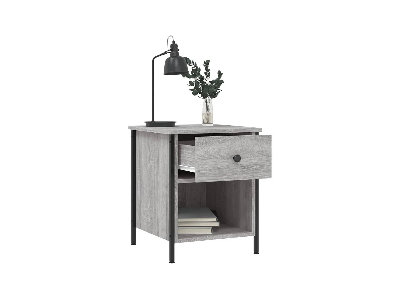 Nachttisch Grau Nachtschrank Sonoma-Eiche 40x42x50 cm Holzwerkstoff -RN46630