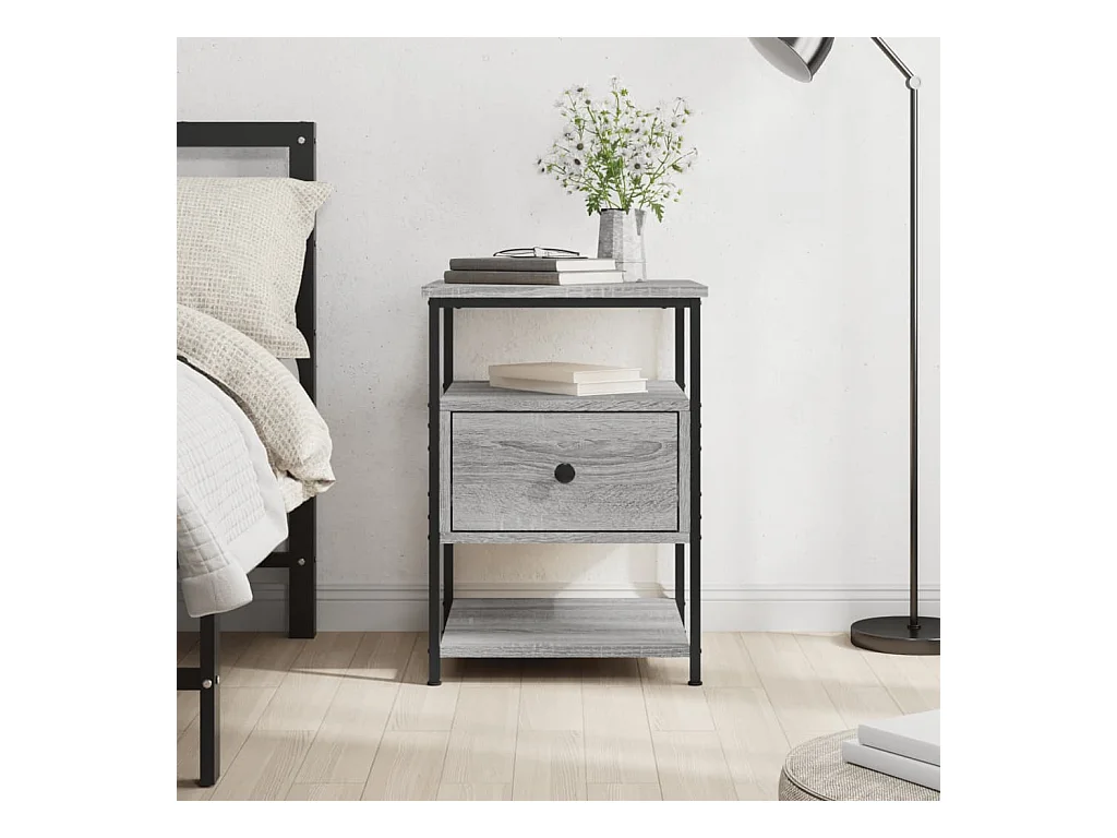 Nachttisch Grau Nachtschrank Sonoma-Eiche 40x42x56 cm Holzwerkstoff -RN84005