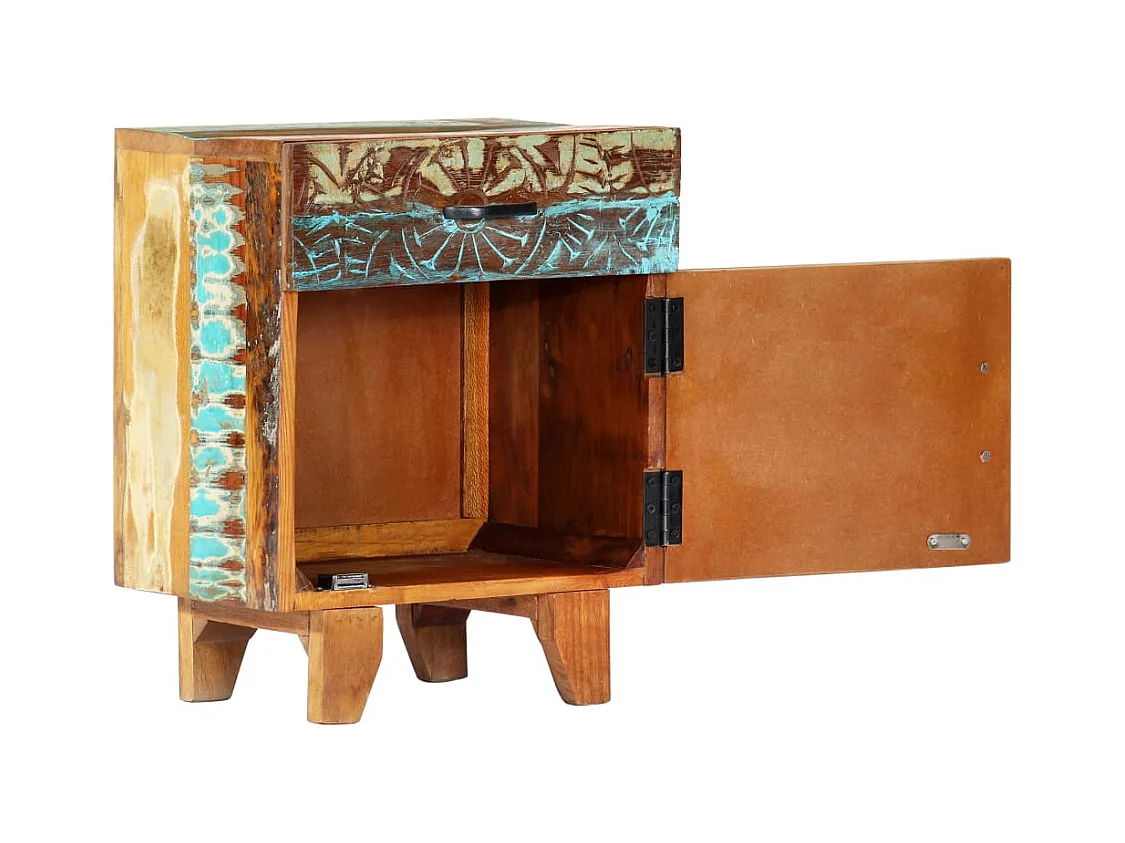 Nachttisch Handgeschnitzt 40x30x50 cm Altholz Massiv