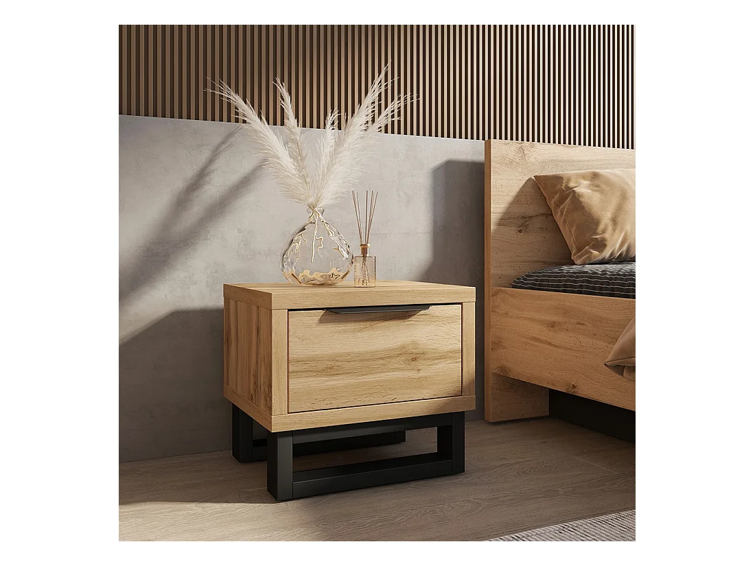 Nachttisch im Industriestil mit einer großen Schublade, Kollektion MILOS. Farbe rohe Eiche.