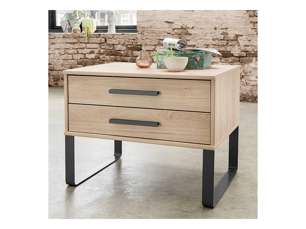 Nachttisch in Eiche Nachbildung und Dunkelgrau zwei Schubladen