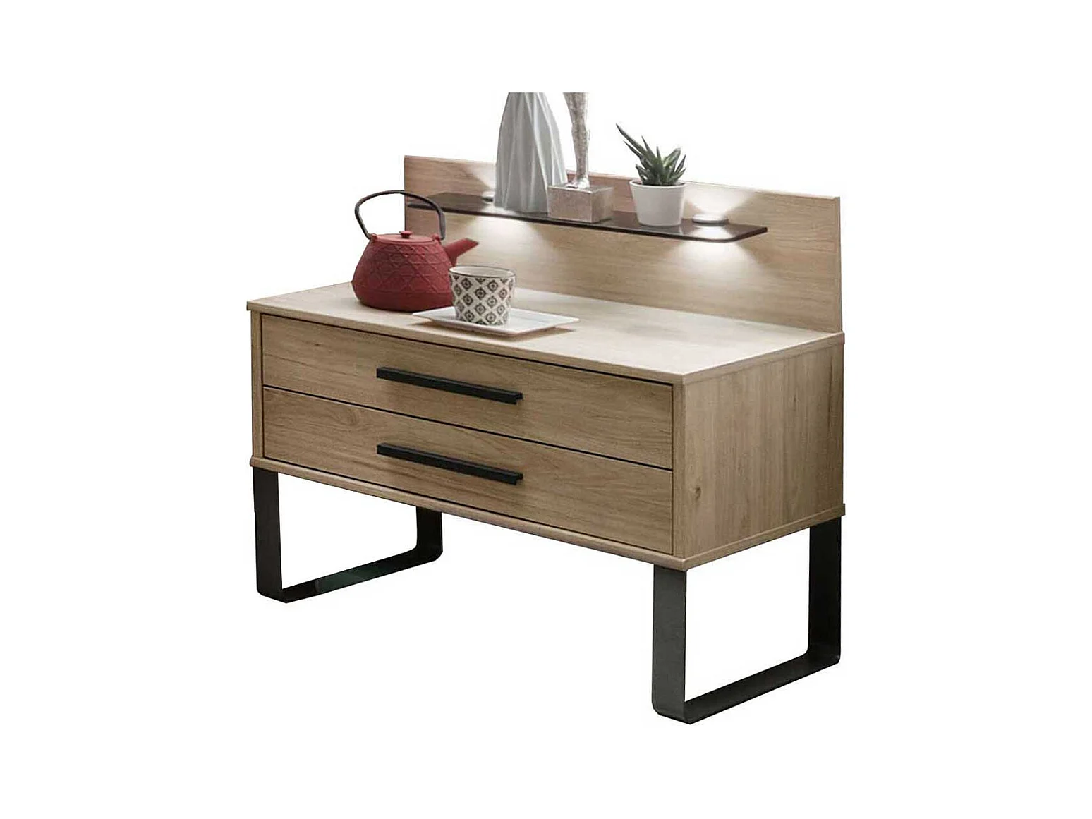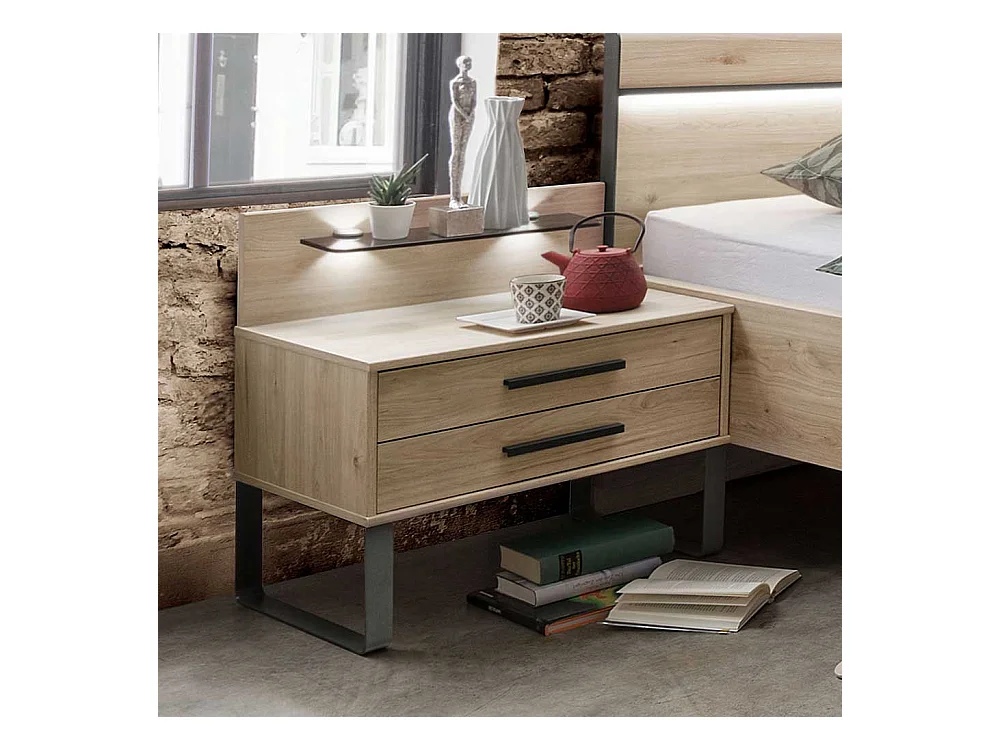 Nachttisch in Eiche Optik und Dunkelgrau LED Beleuchtung