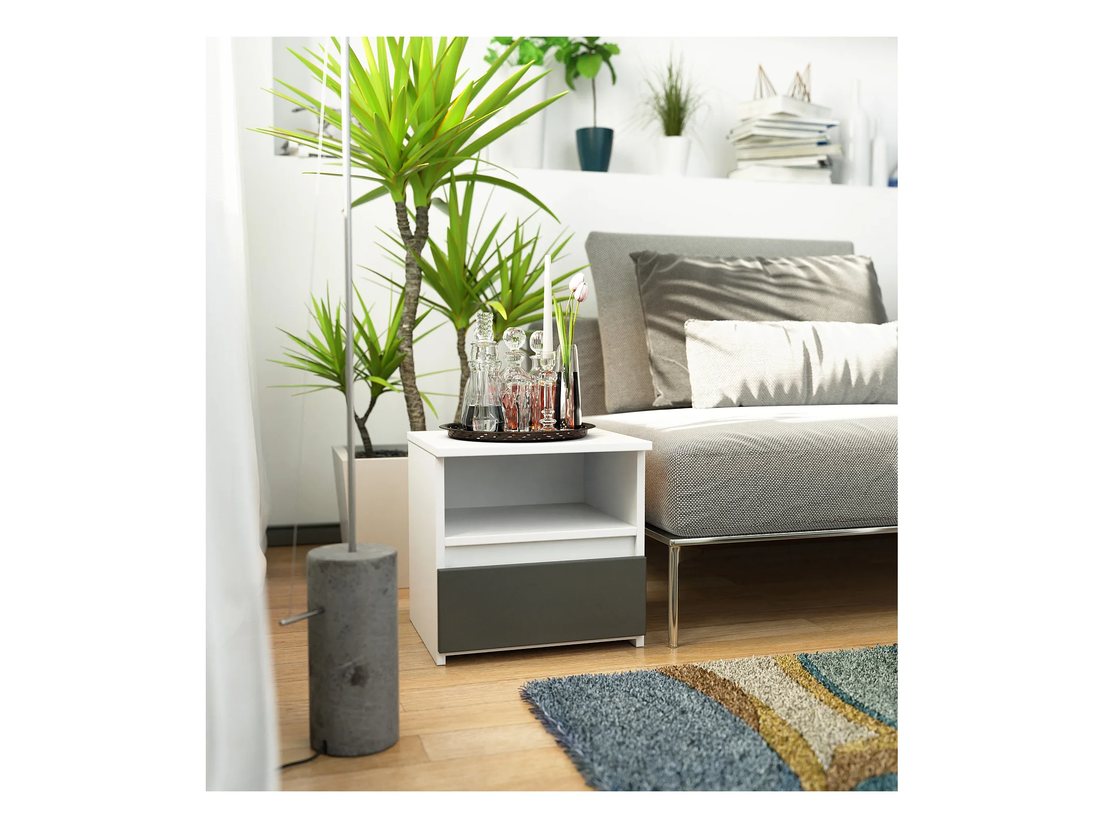Nachttisch in minimalistischer Optik AKORD CL1 in der Farbe Weiß Schublade Front Graphitgrau B40 x H40 x T35 cm