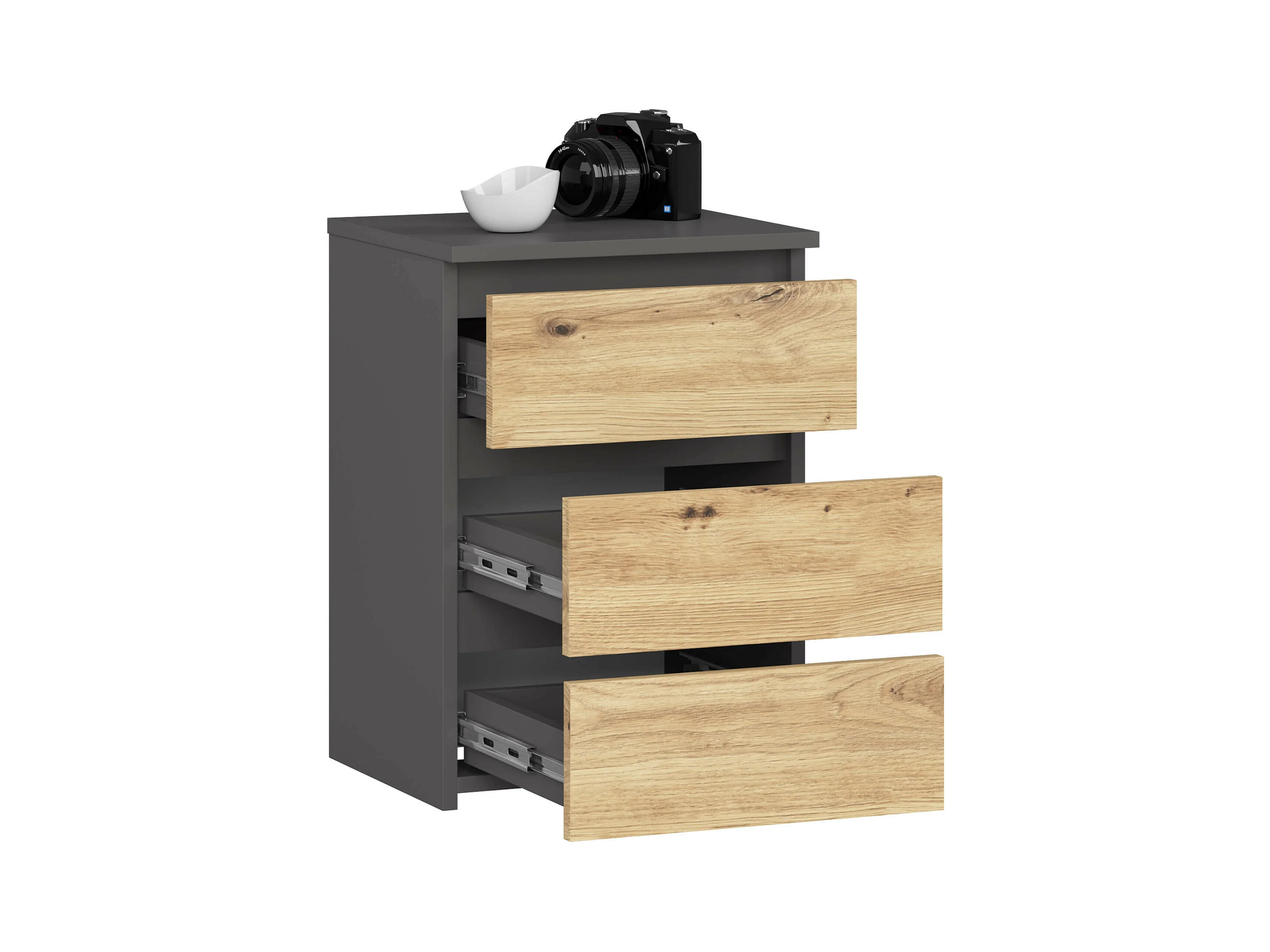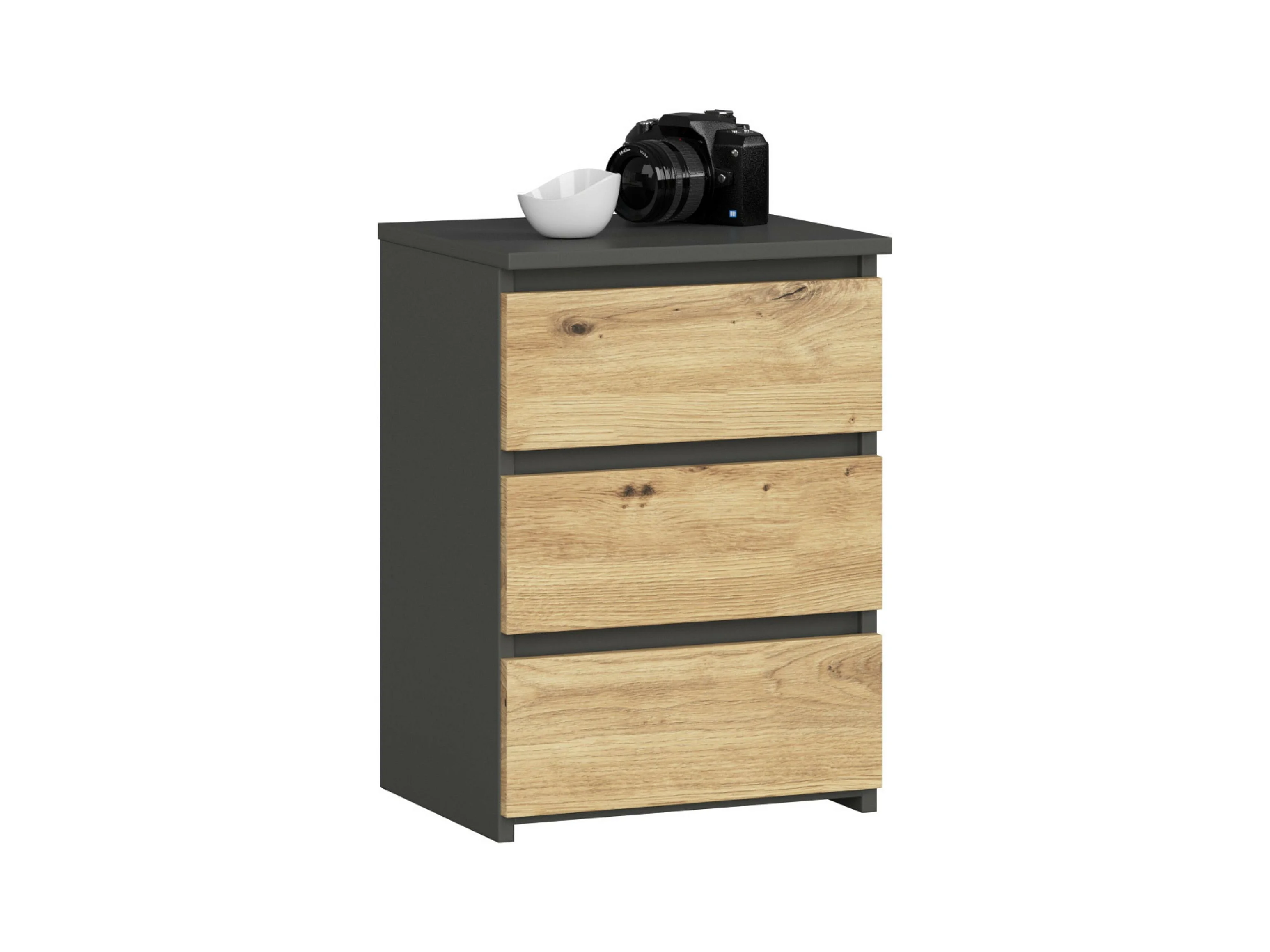 Nachttisch in minimalistischer Optik AKORD CL3 in der Farbe Graphitgrau mit 3 Schubladen Front Eiche Artisan B40 x H57 x T35 cm