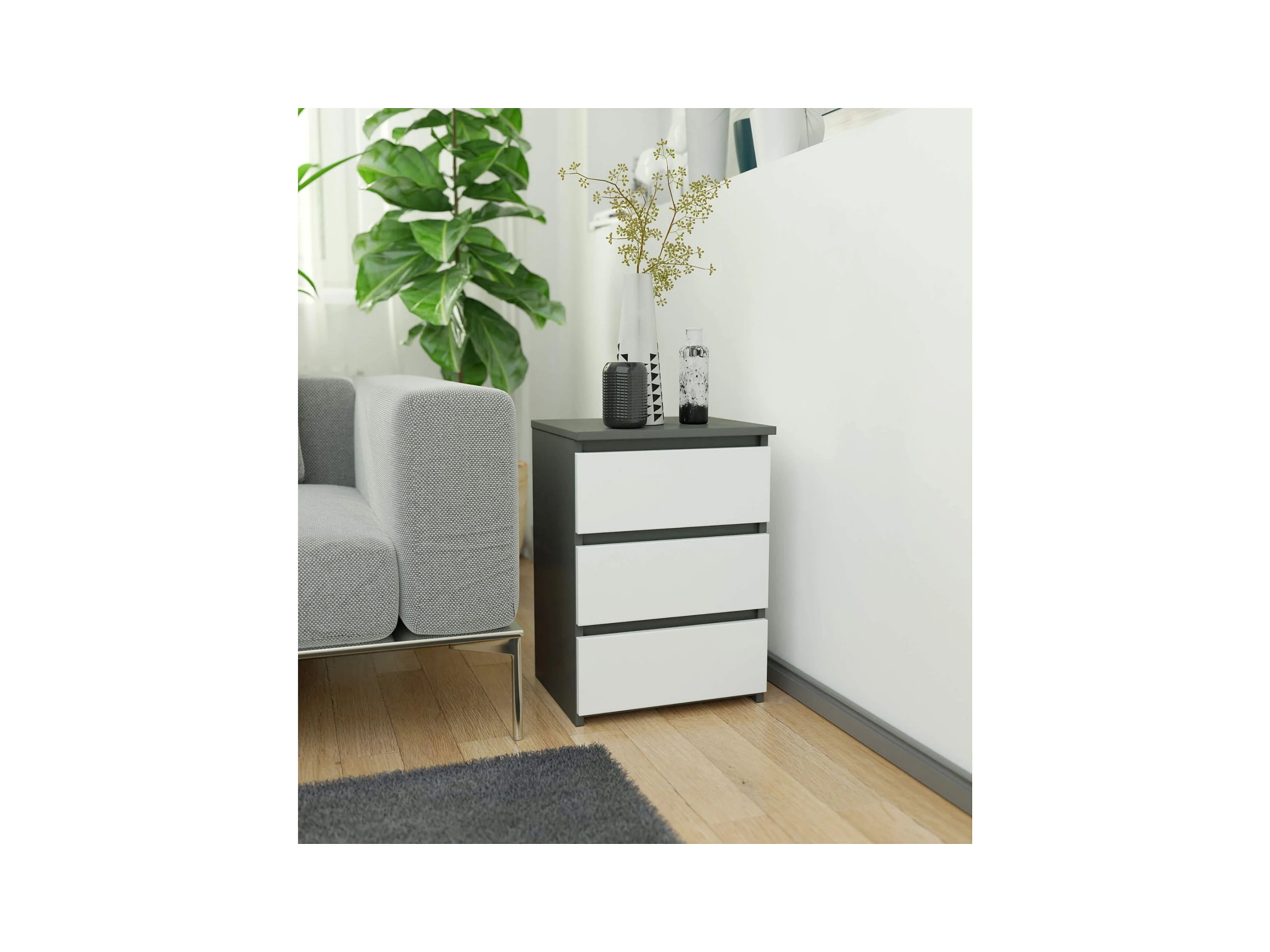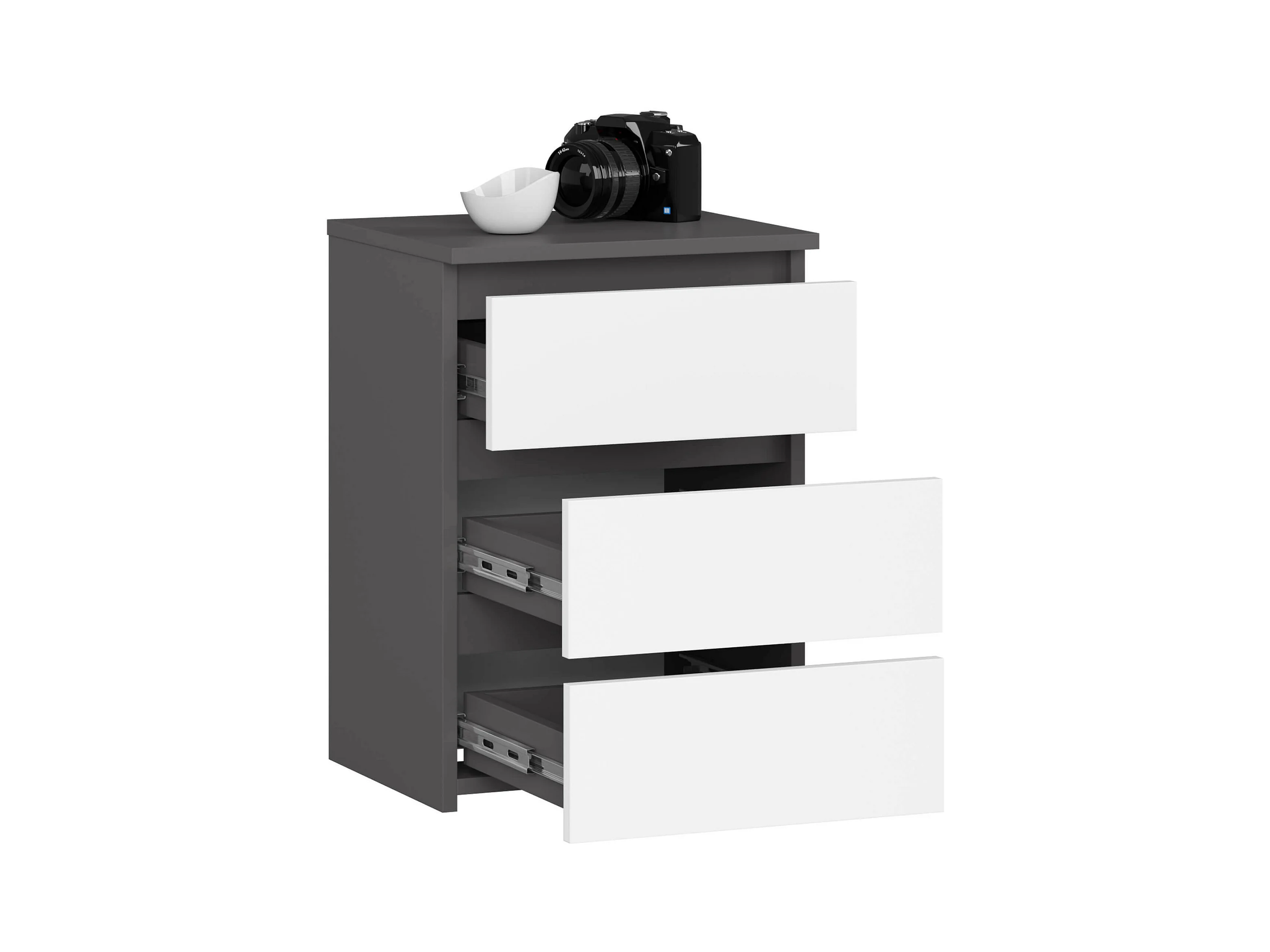 Nachttisch in minimalistischer Optik AKORD CL3 in der Farbe Graphitgrau mit 3 Schubladen Front Weiß B40 x H57 x T35 cm