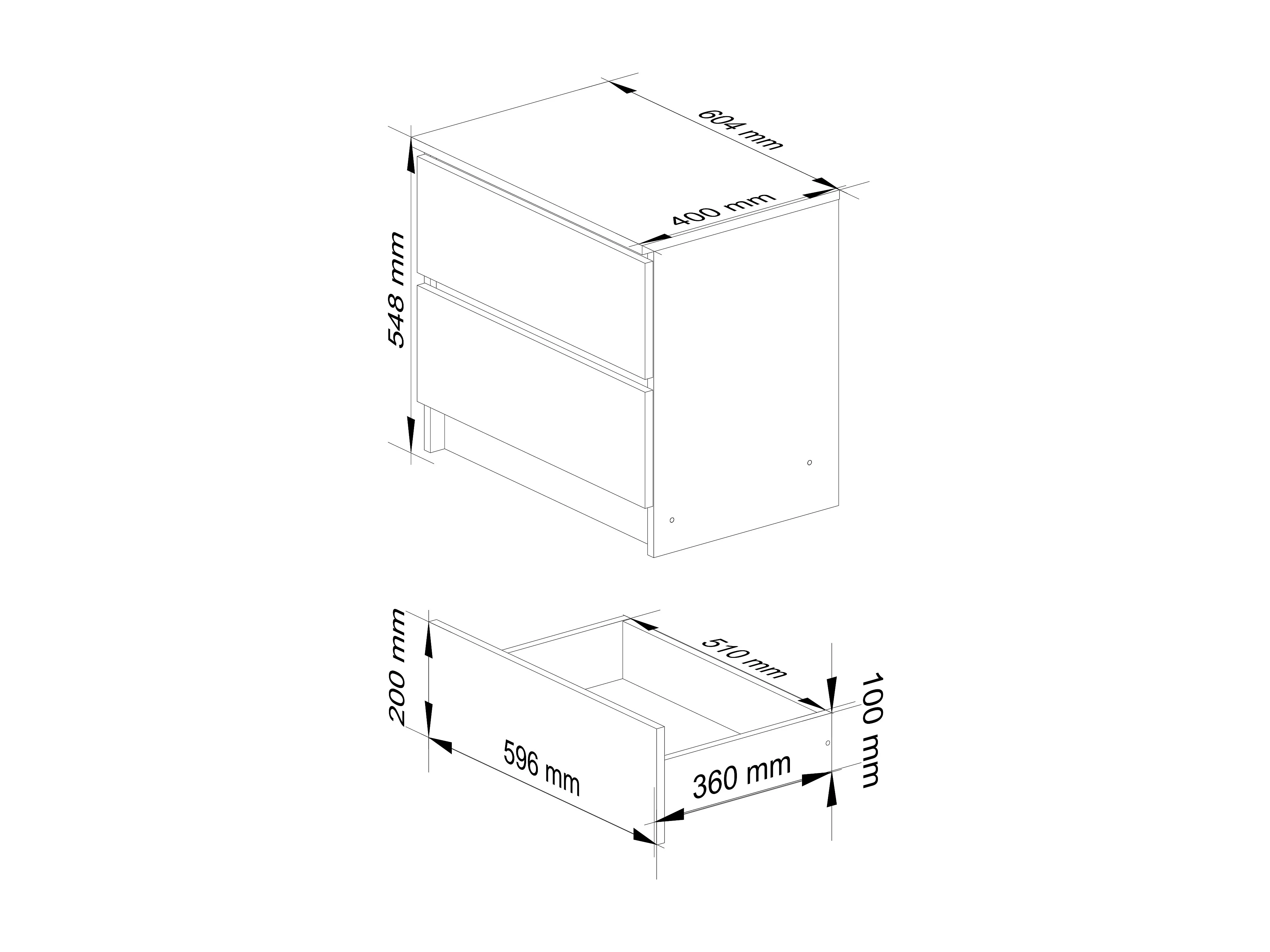 Nachttisch in minimalistischer Optik AKORD K60 in der Farbe Weiß mit 2 Schubladen Front Graphitgrau B60 x H55 x T40 cm