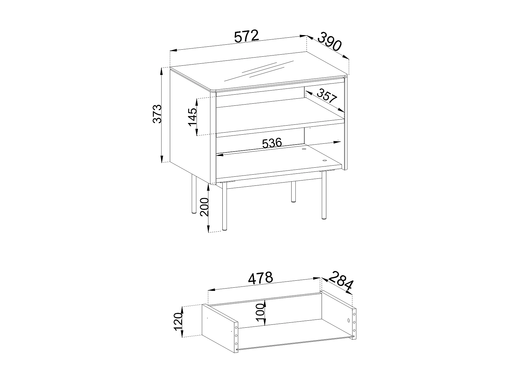 Nachttisch, Kaschmir, 57 x 57 x 39 cm