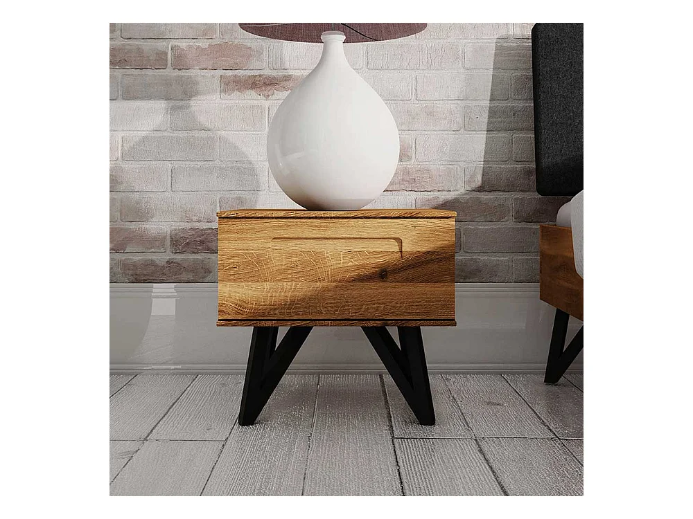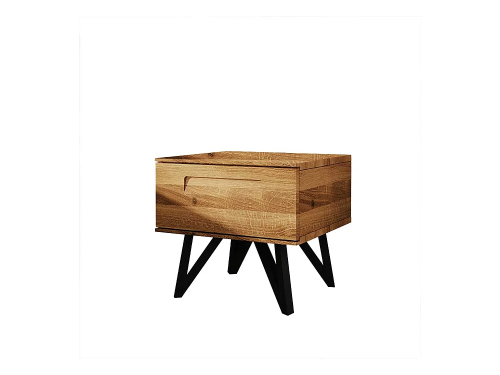 Nachttisch Kommode aus Wildeiche Massivholz und Stahl 45 cm breit