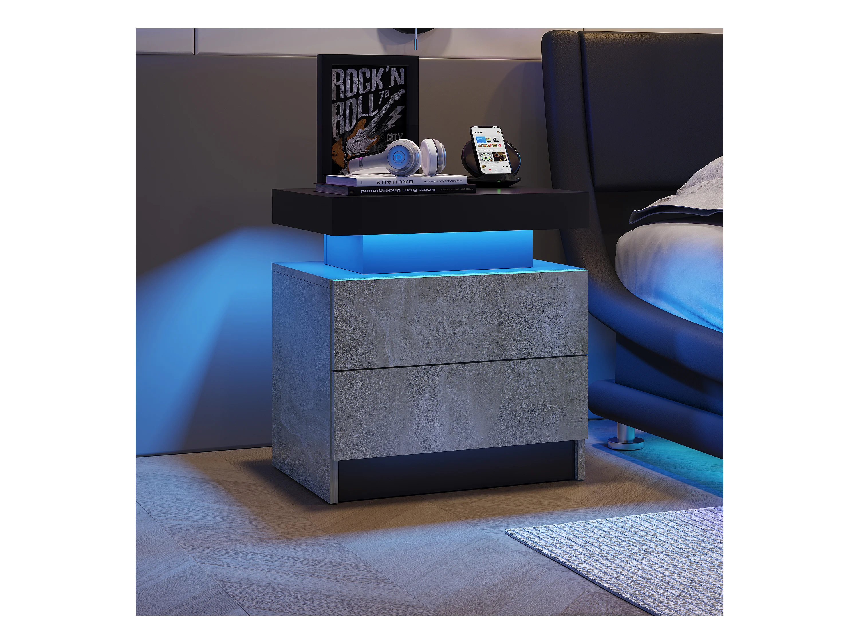 Nachttisch, LED-Nachttisch, Schrankbeleuchtung, modernes Endstück mit 2 Schubladen für Schlafzimmer (grau)