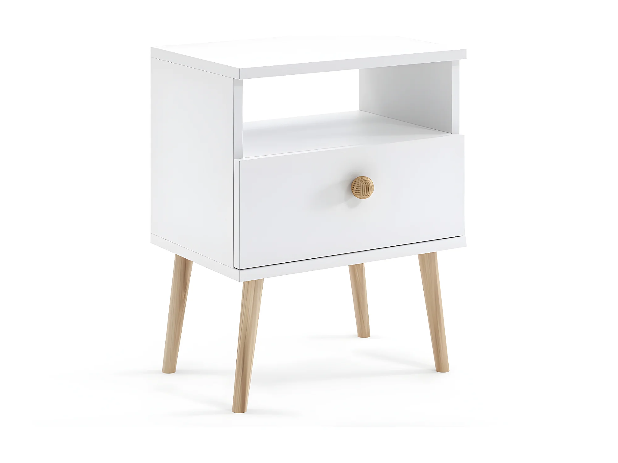 Nachttisch MALIBO 44 cm mit Schublade Weiß Matt