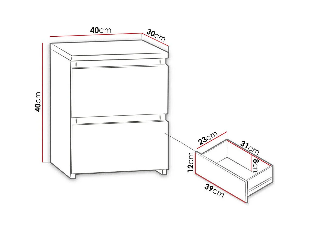 Nachttisch mit 2 Schubladen - 40x30x40 cm - Weiß - Malwa M2