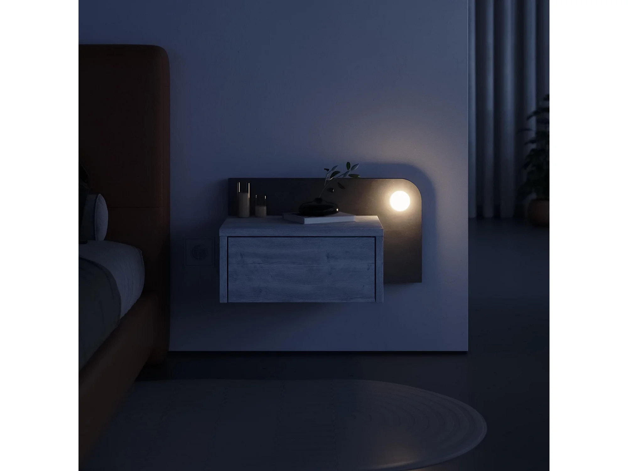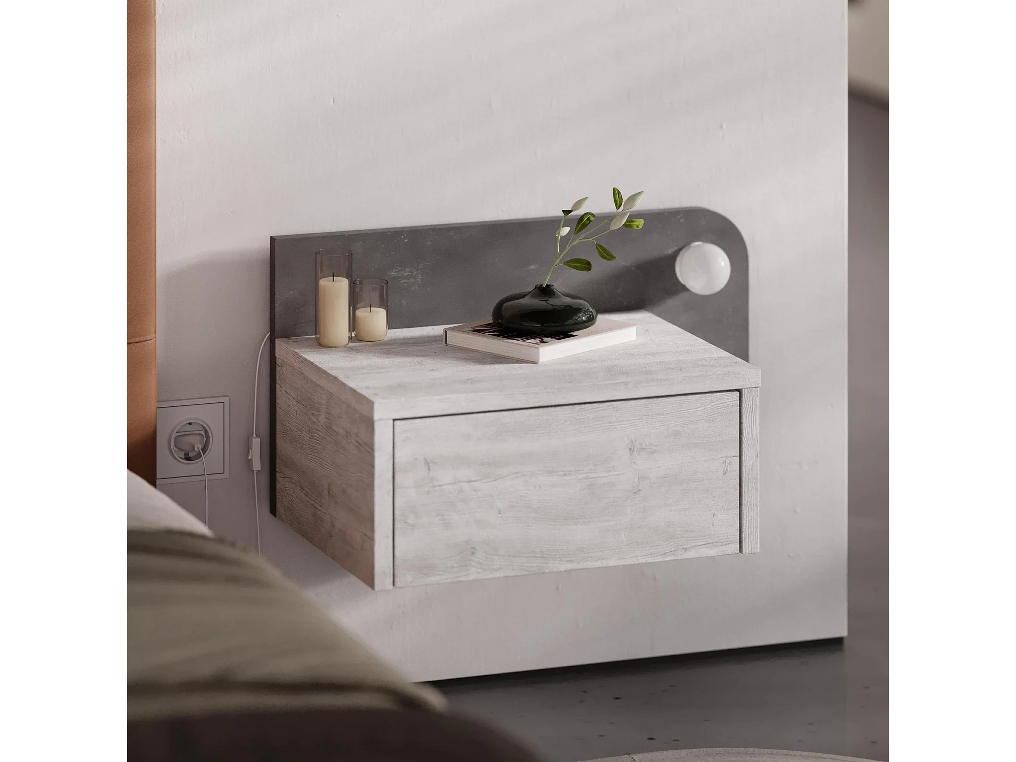 Nachttisch mit Glühbirne aus Holz "Dotta" - 52 x 30 x 28 cm - Grau