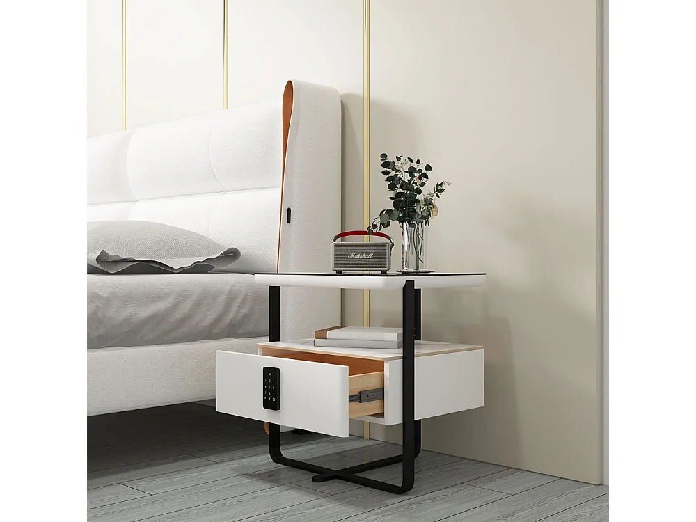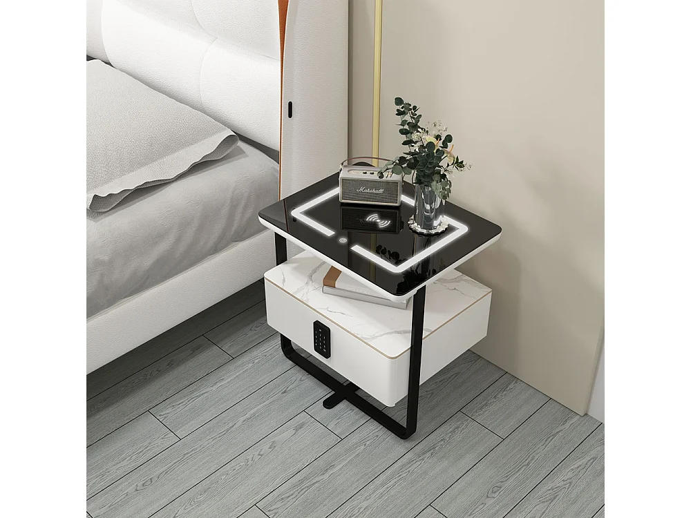 Nachttisch mit kabelloser LED-Lampe und Schublade Klaas