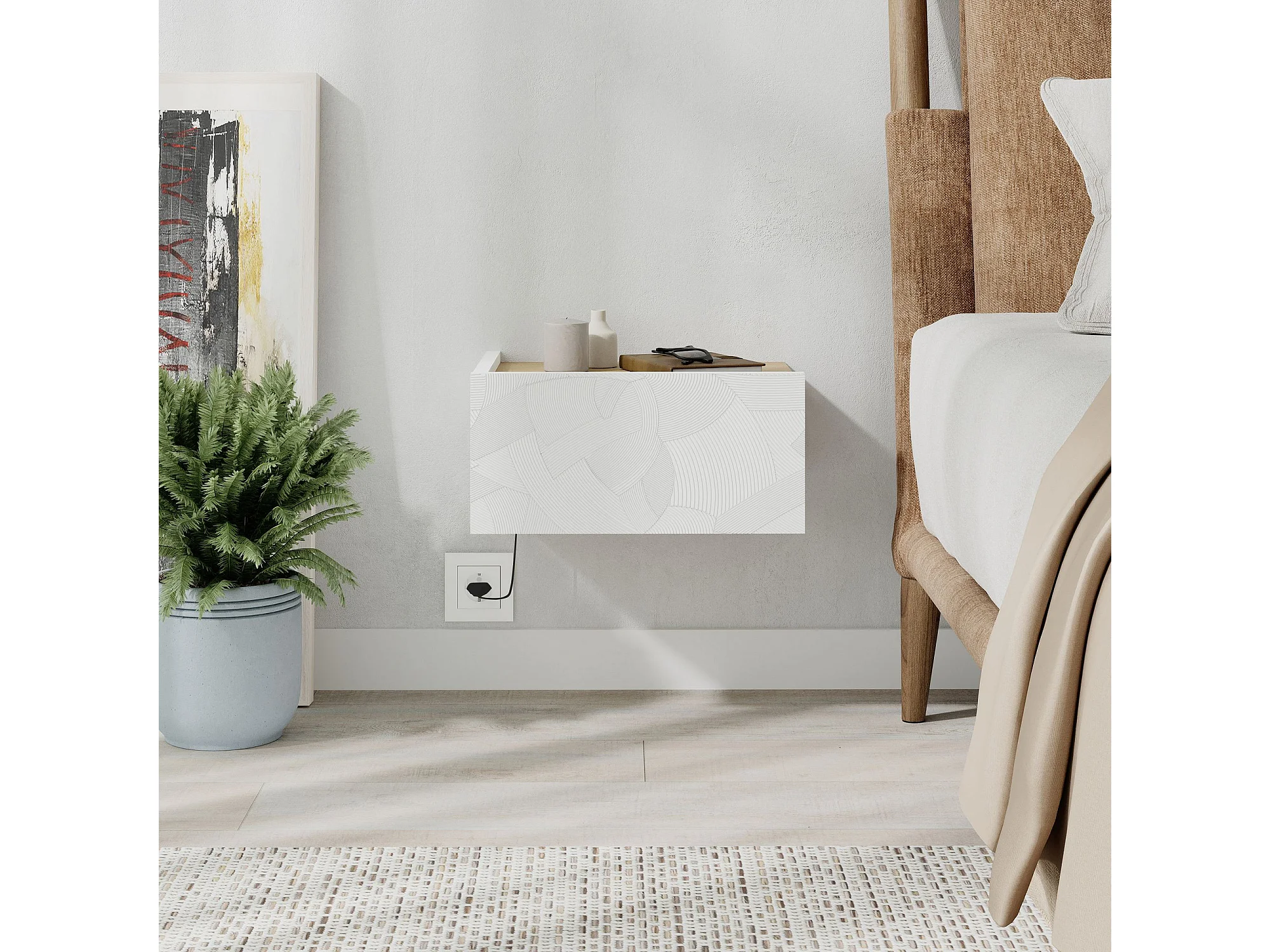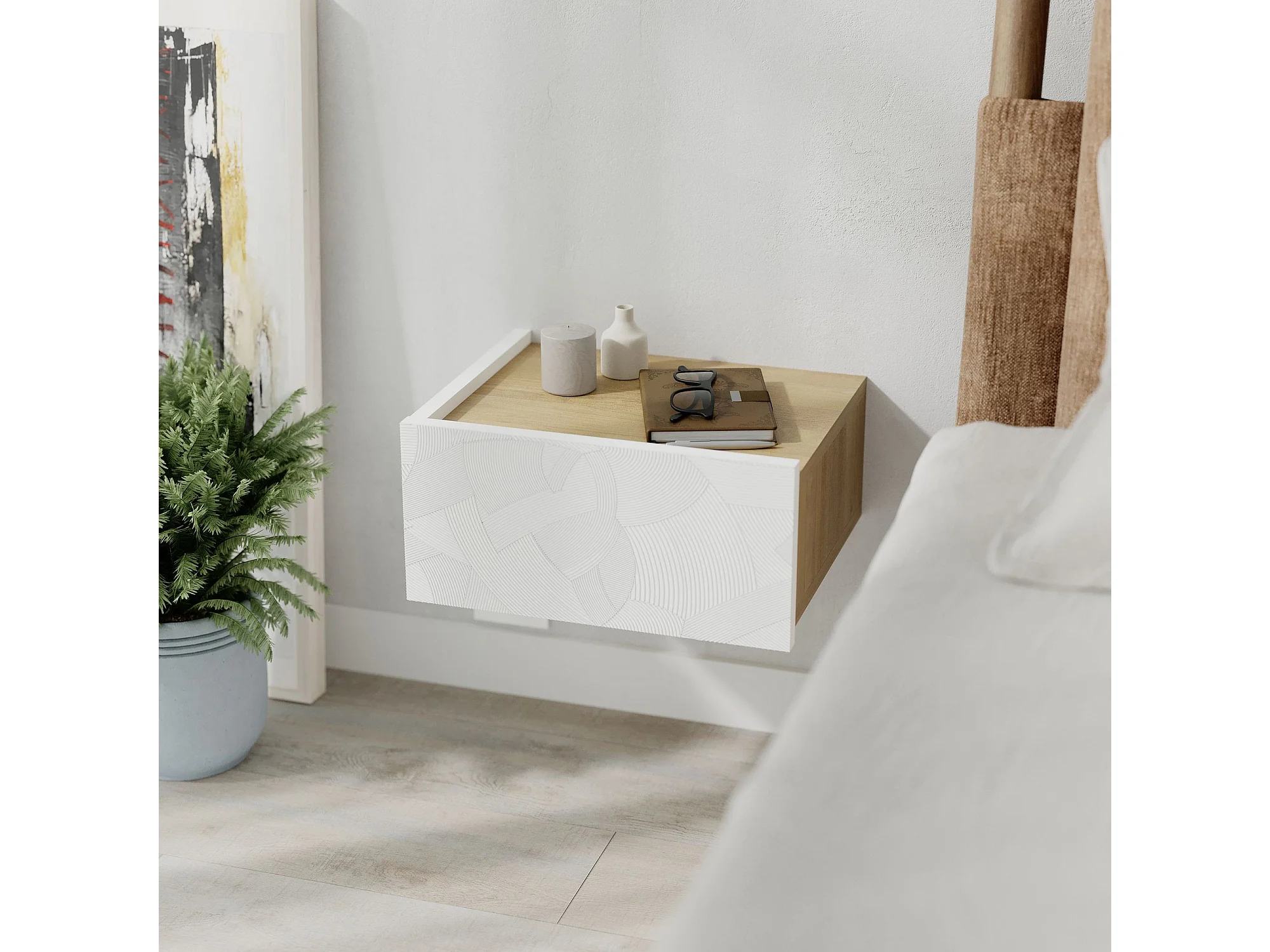 Nachttisch mit LED-Beleuchtung aus Holz "Onda" - 38 x 31 x 18 cm - Weiß