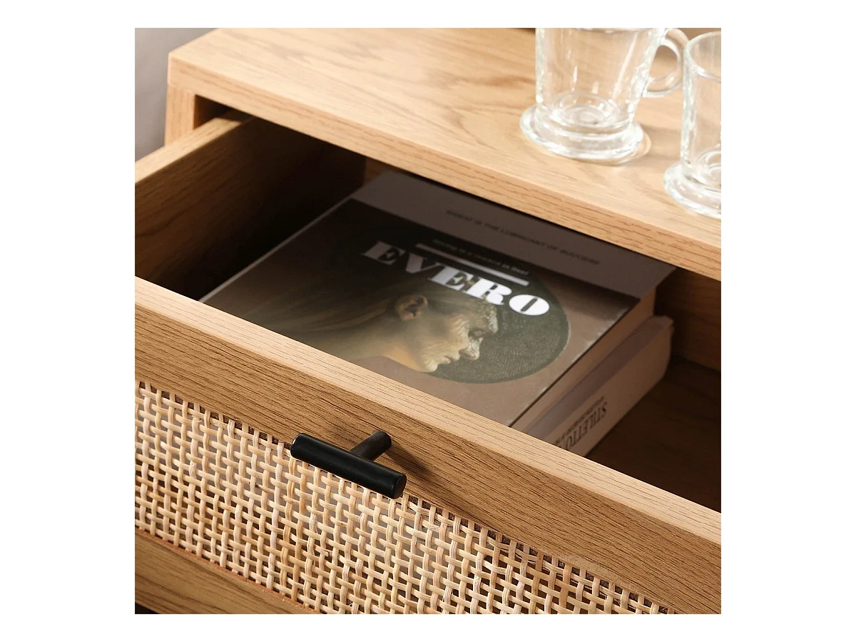 Nachttisch mit Rattanfront, Schublade und einem Regal H50 cm - JAYA