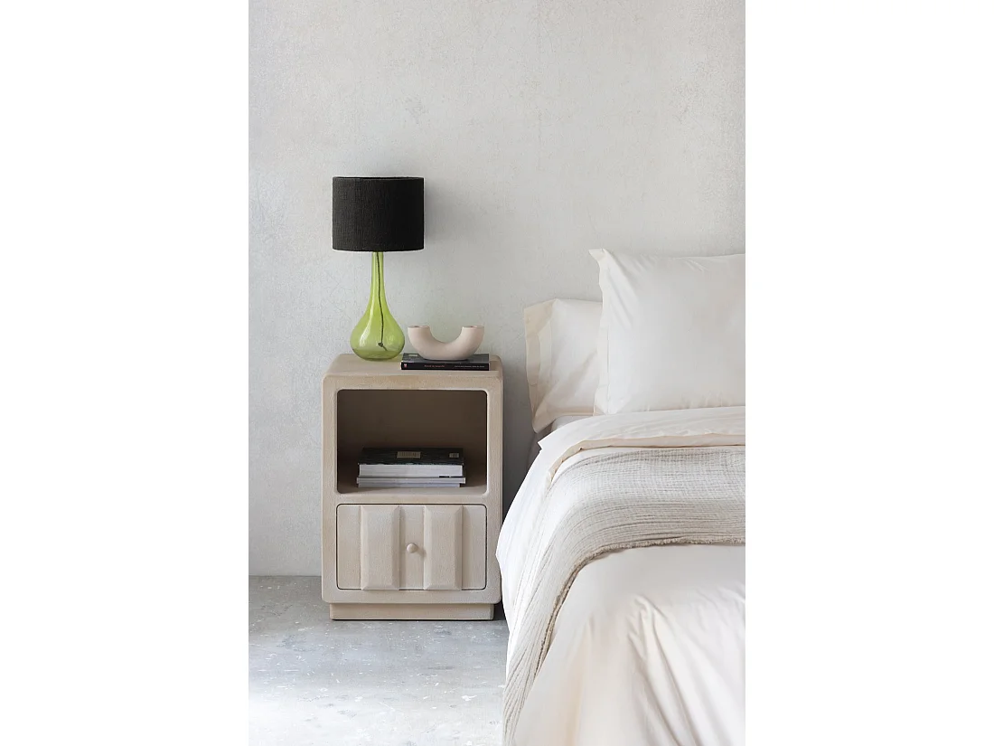 Nachttisch mit Schublade aus sandfarbenem Polyresin-Zement