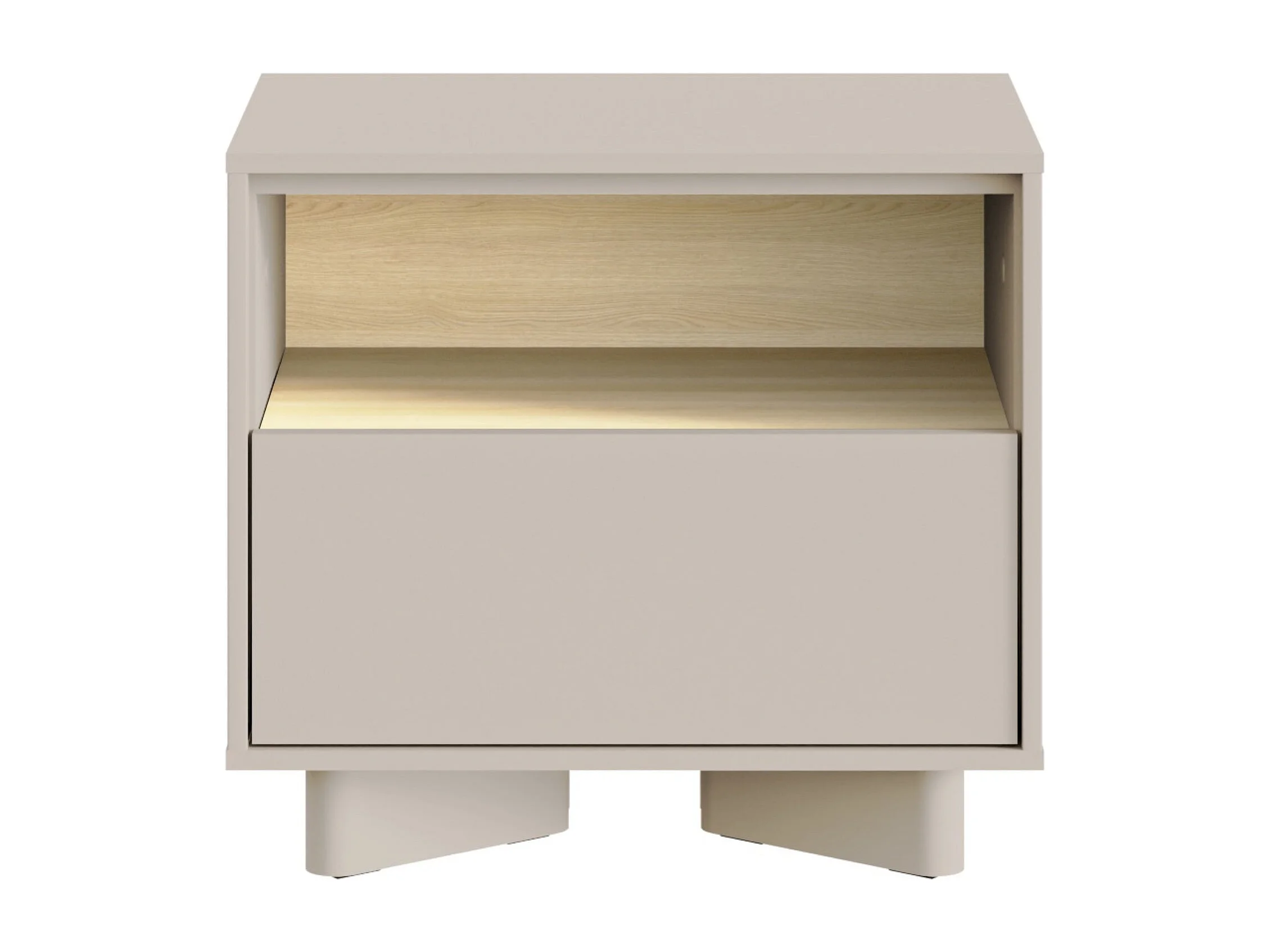 Nachttisch mit Schublade Kaschmirgrau / Eichenholzoptik – 50 cm – DISTRIA