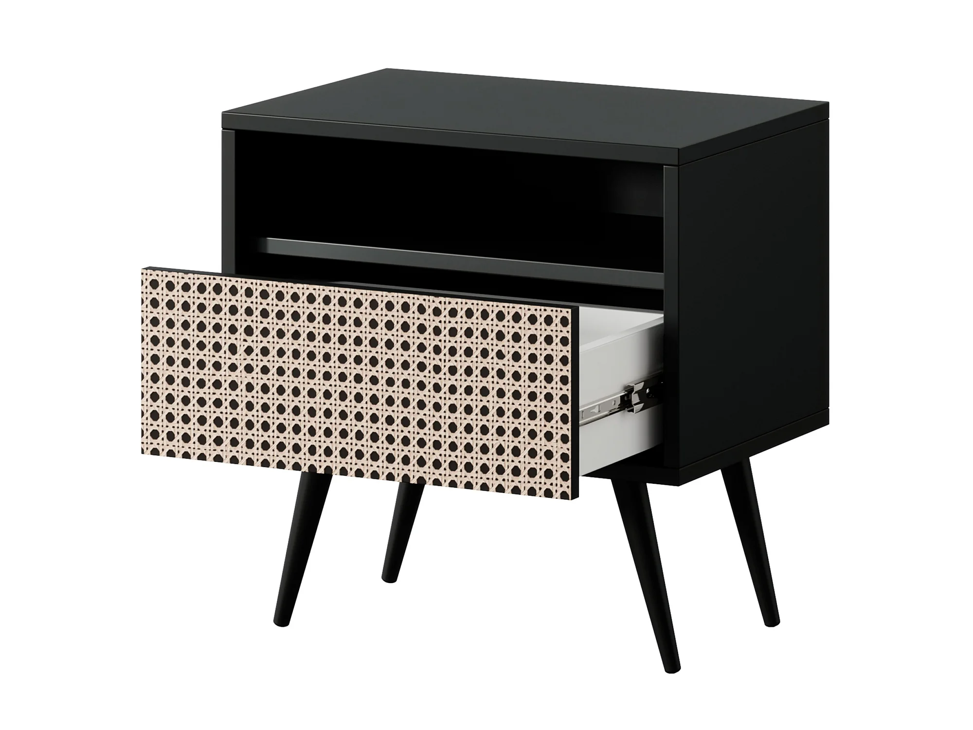 Nachttisch mit Schublade, Schwarz mit Wiener Geflecht Optik - Bello