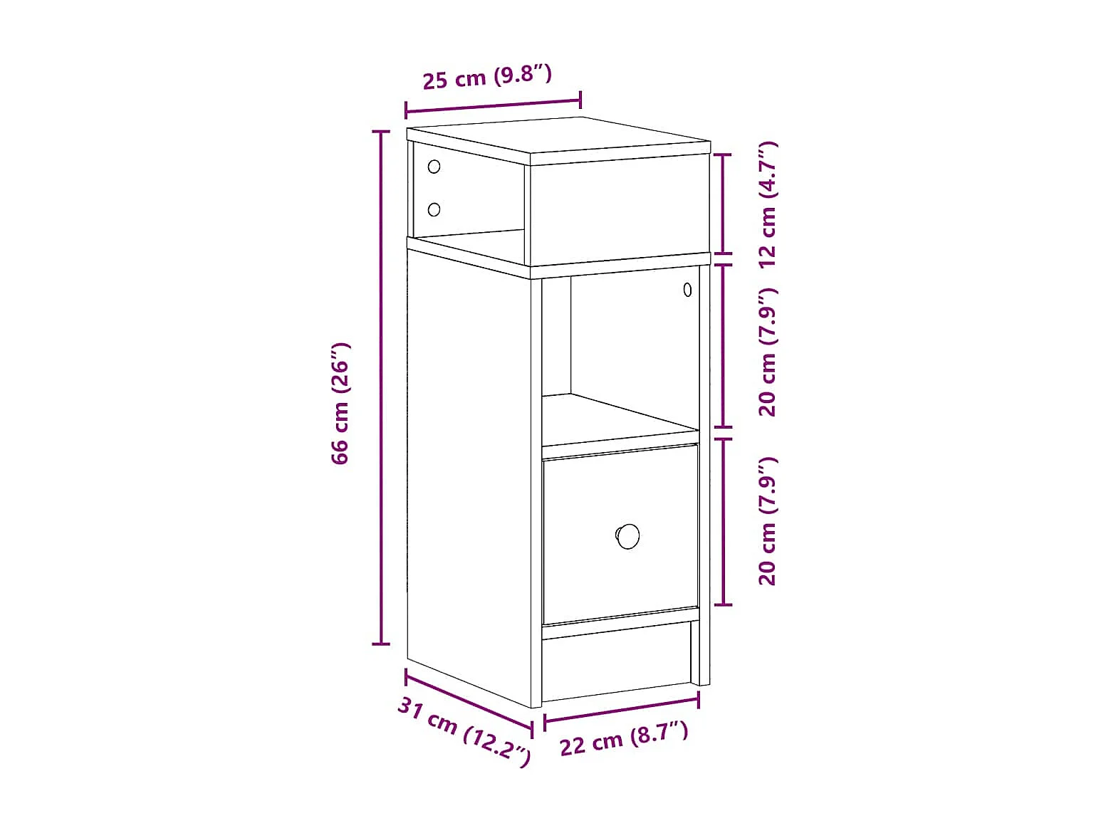 Nachttisch mit Schublade Weiß 25x31x66 cm
