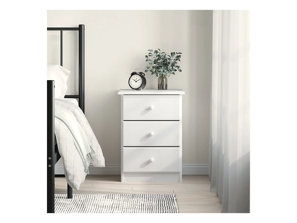 Nachttisch Nachtschrank ALTA Weiß 41x35x55 cm Massivholz Kiefer -RN17185