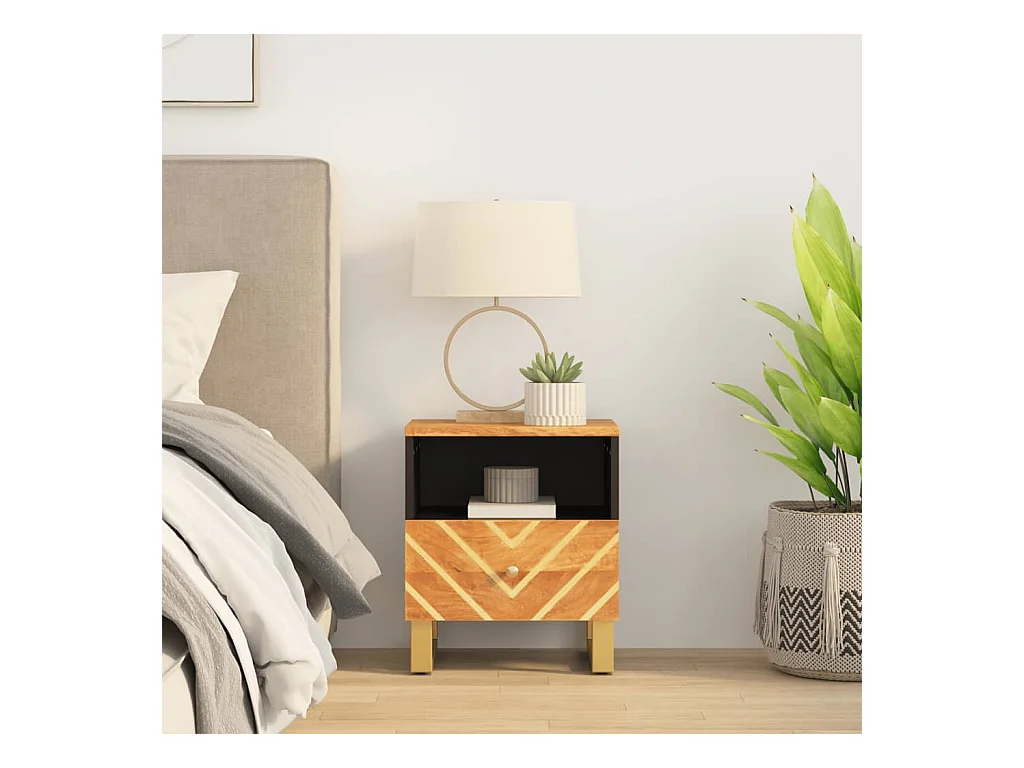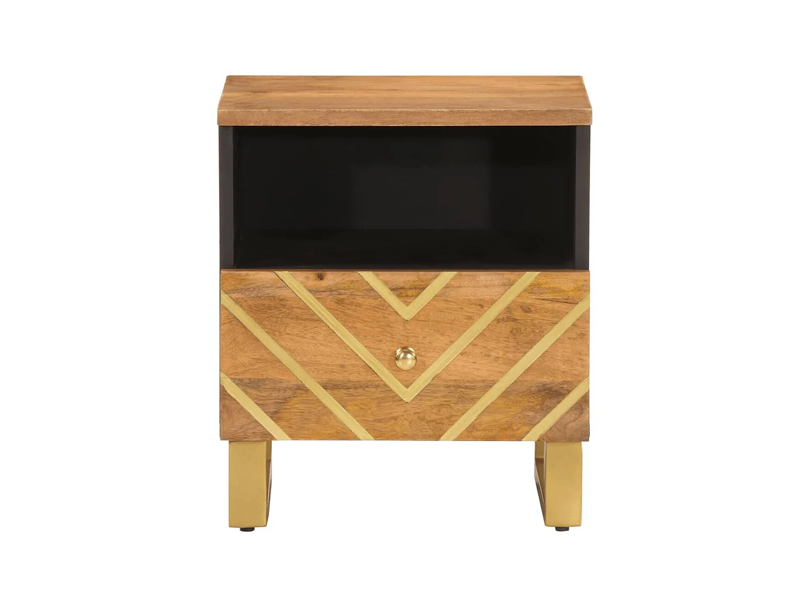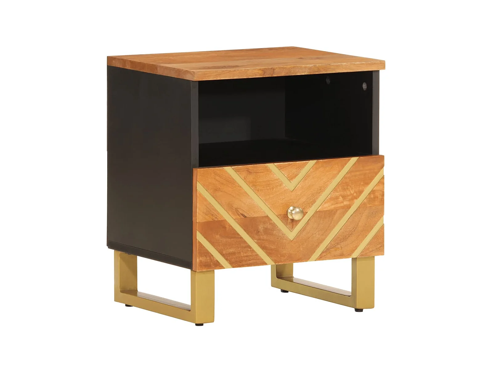 Nachttisch Nachtschrank Braun und Schwarz Massivholz Mango -RN96211