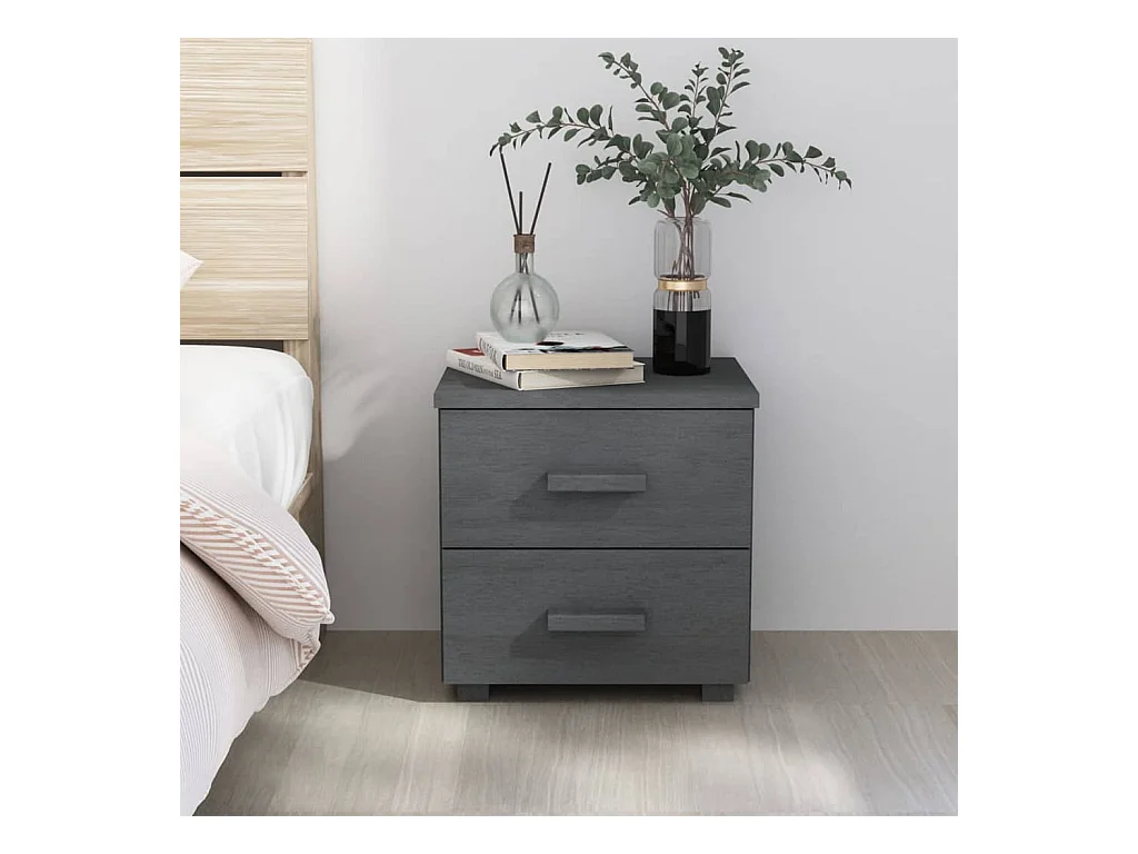 Nachttisch Nachtschrank HAMAR Dunkelgrau 40x35x44,5 cm Massivholz Kiefer -RN22169