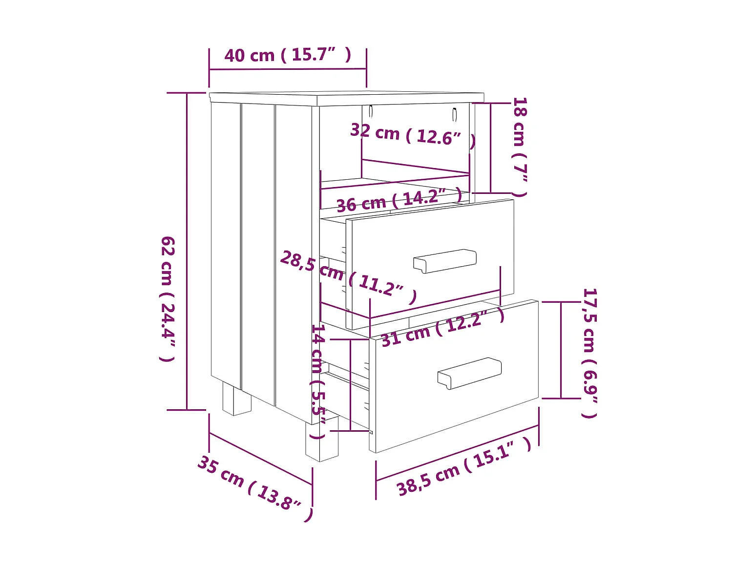 Nachttisch Nachtschrank HAMAR Hellgrau 40x35x62 cm Massivholz Kiefer -RN57974
