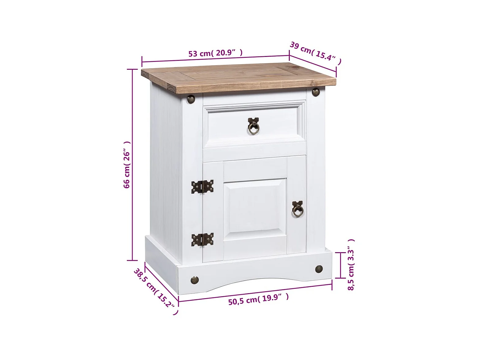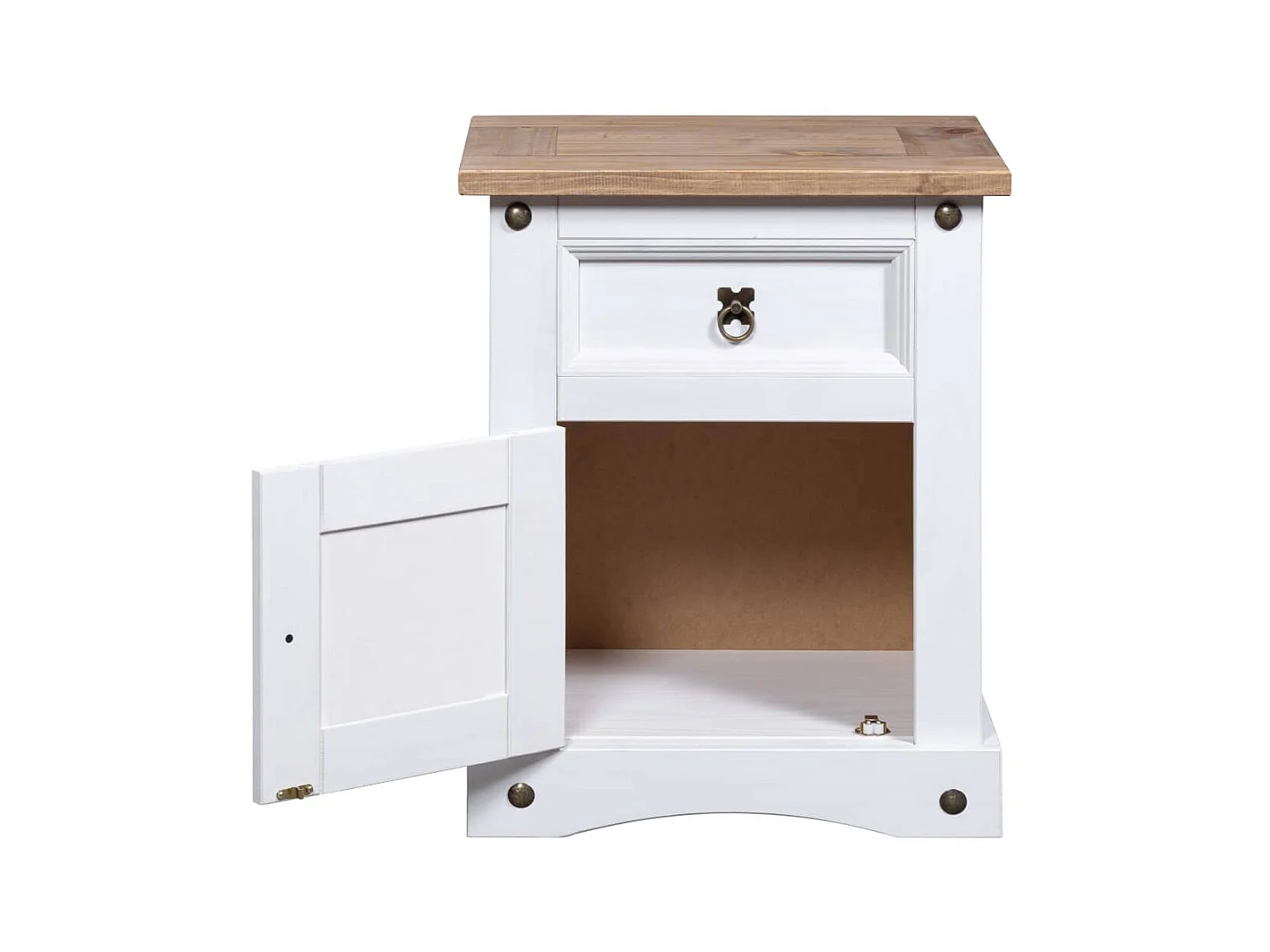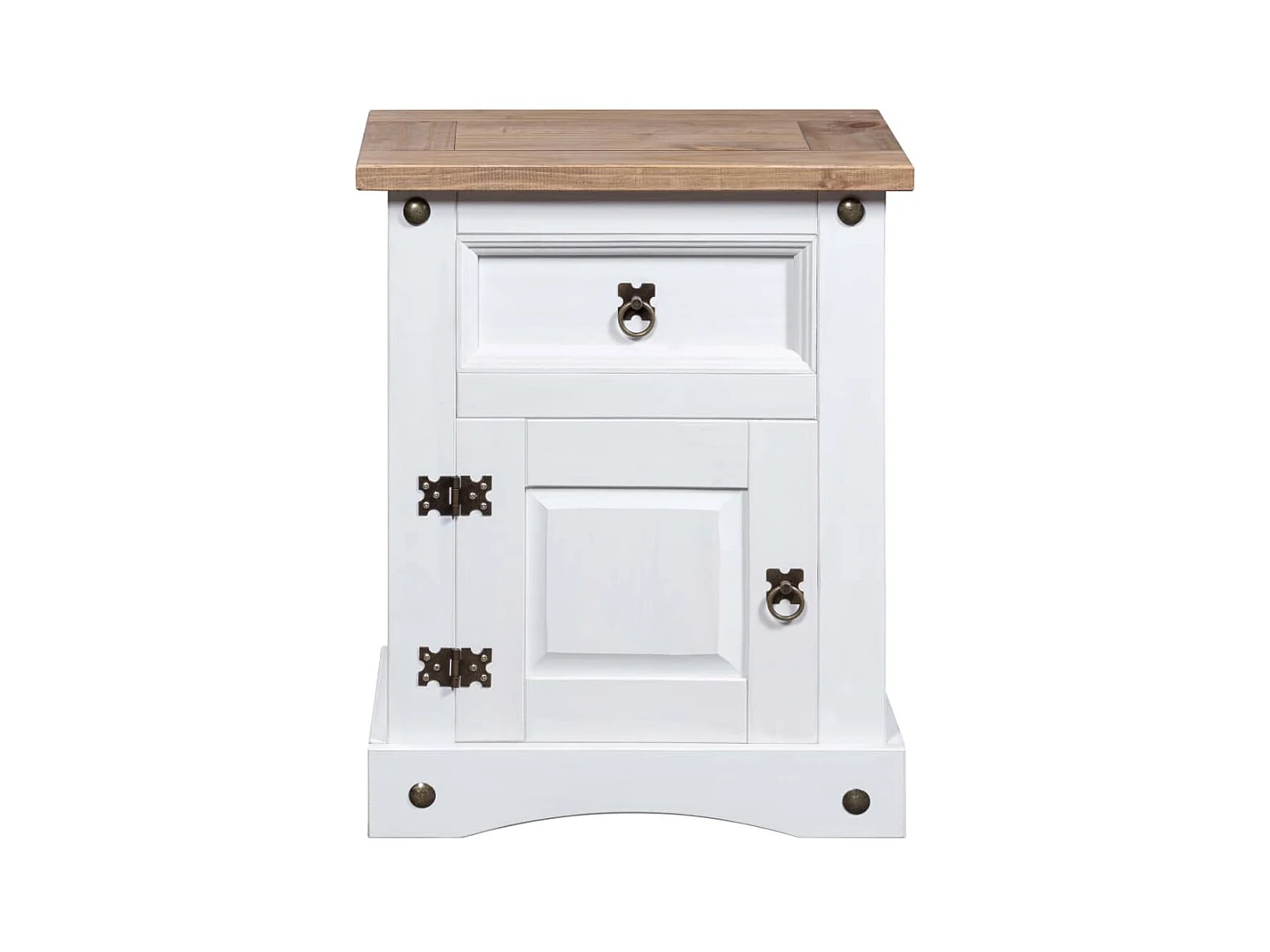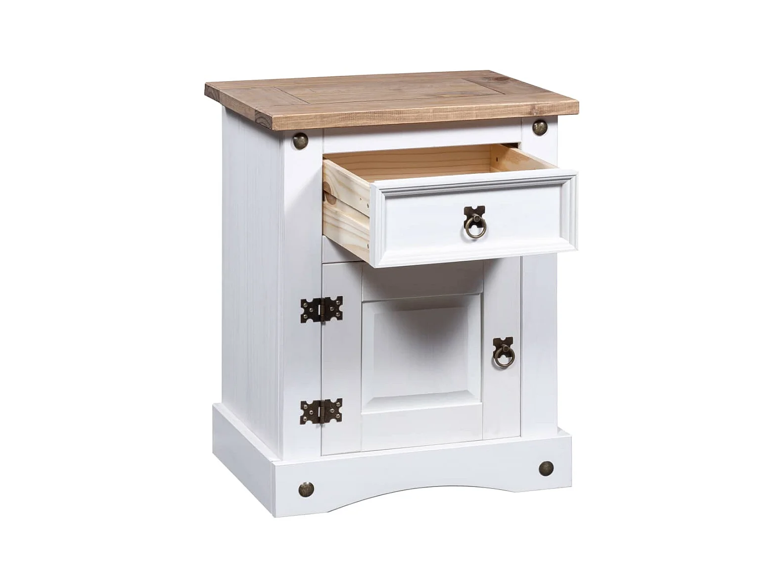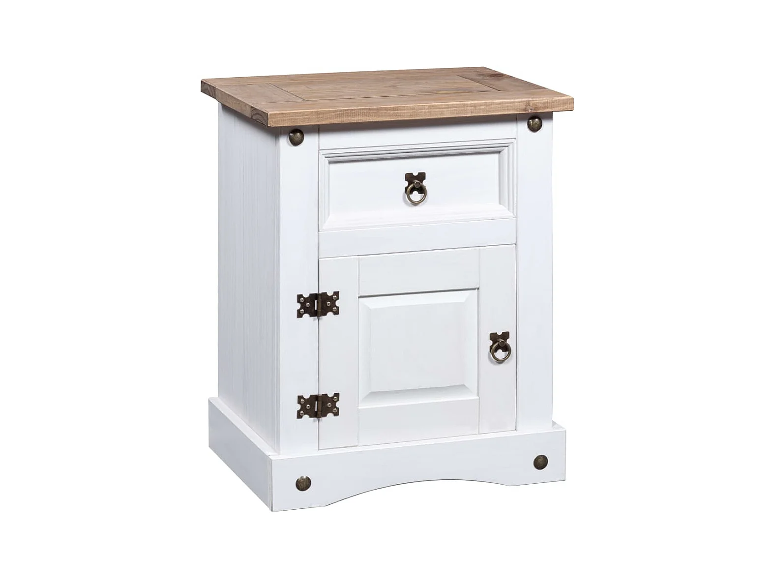 Nachttisch Nachtschrank im Mexiko-Stil Corona Kiefernholz Weiß 53x39x66 cm -RN48458
