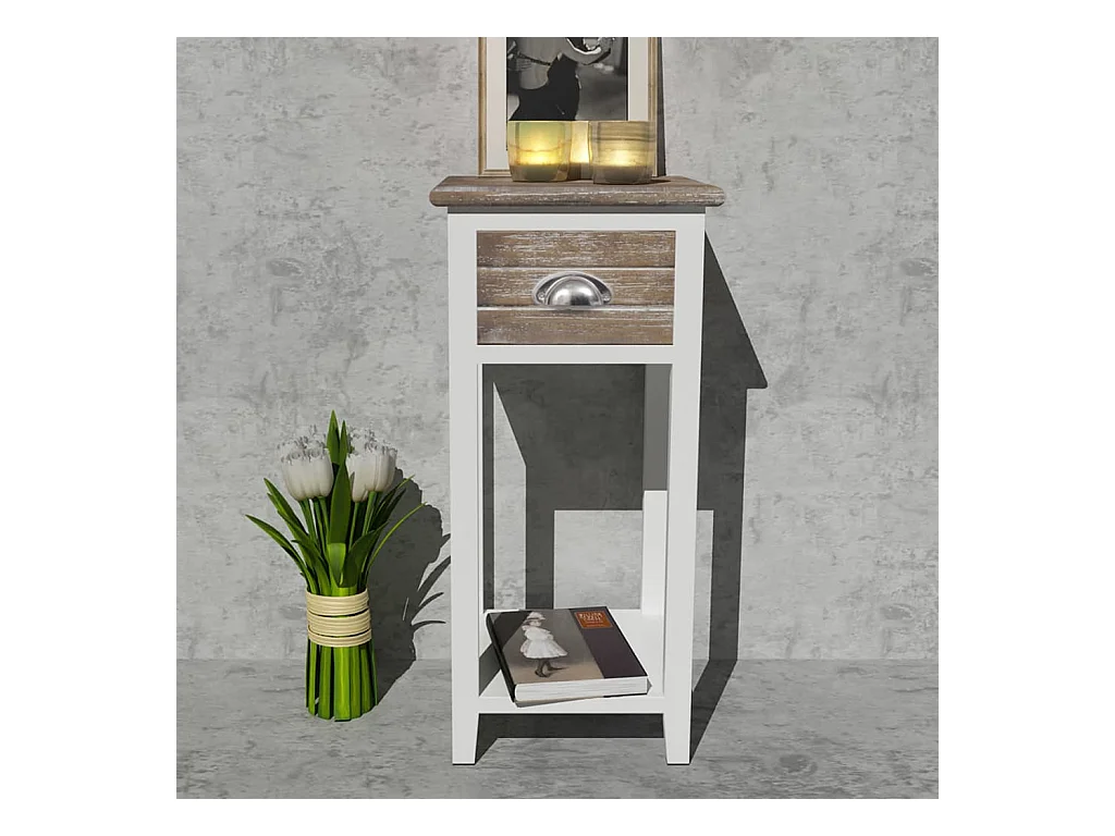 Nachttisch Nachtschrank mit 1 Schublade Braun/Weiß -RN68703