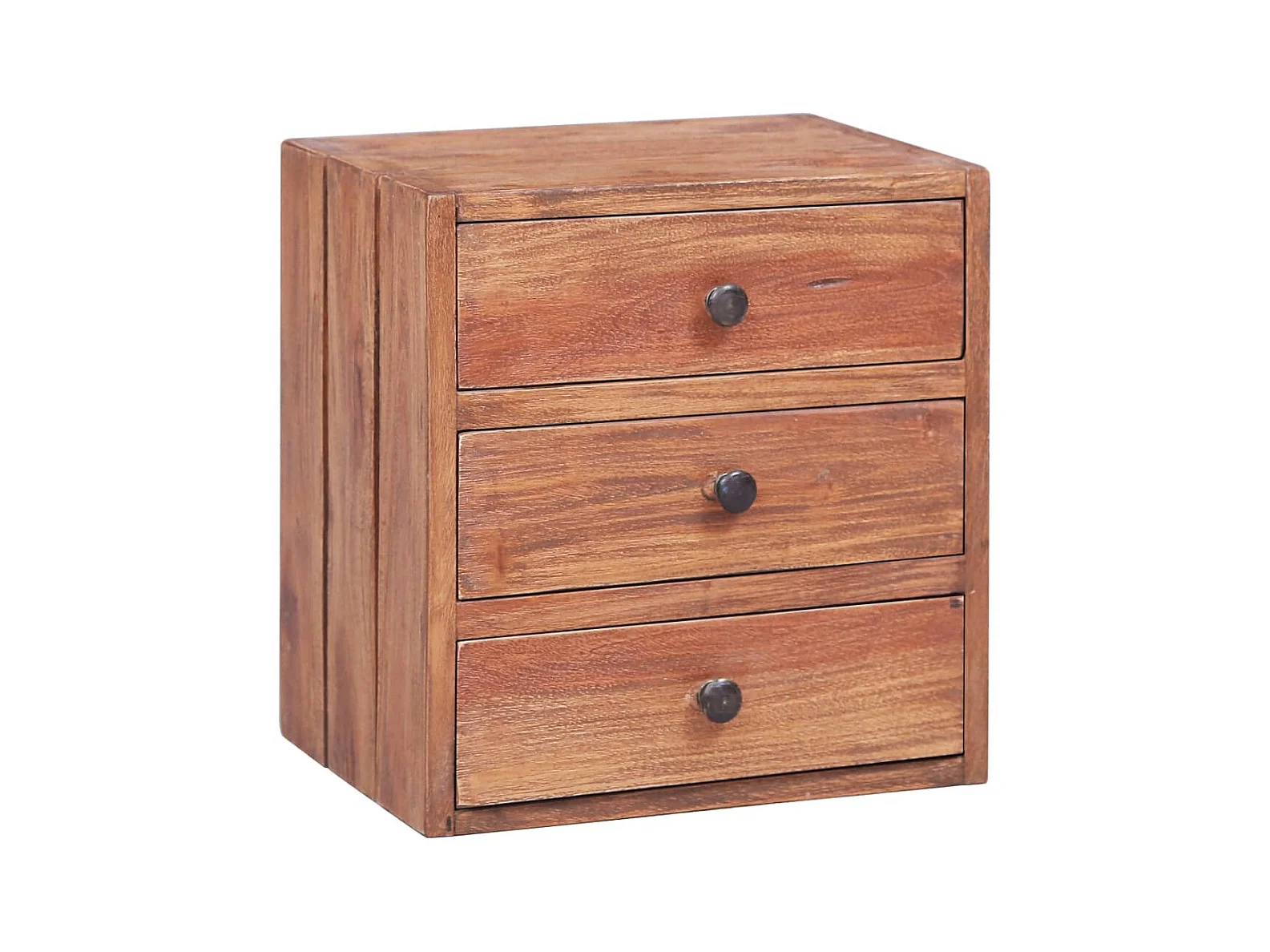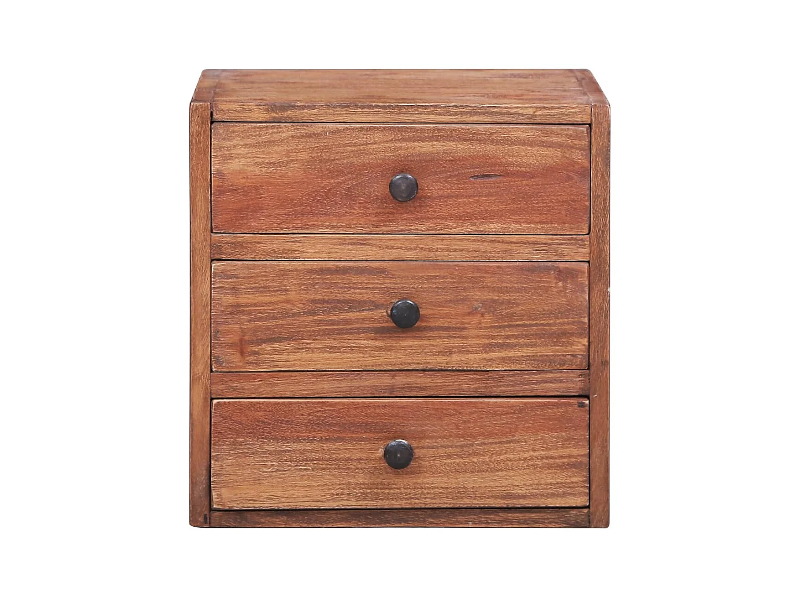 Nachttisch Nachtschrank mit 3 Schubladen 35x25x35 cm Altholz Massiv -RN30367