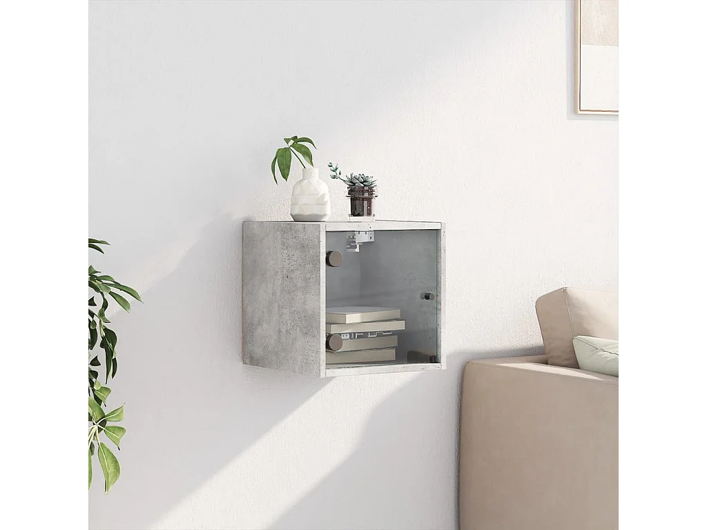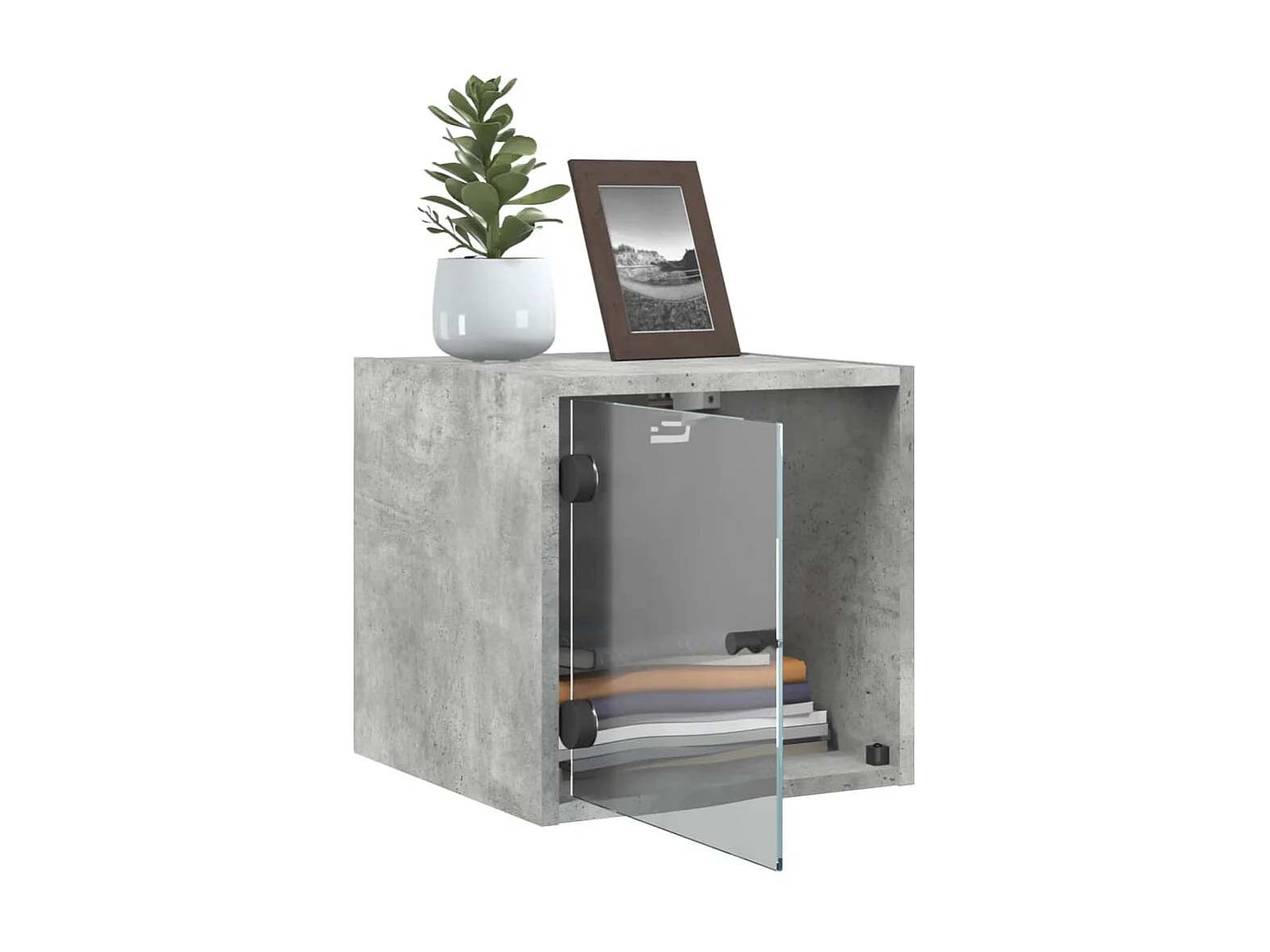 Nachttisch Nachtschrank mit Glastür Betongrau 35x37x35 cm -RN23807