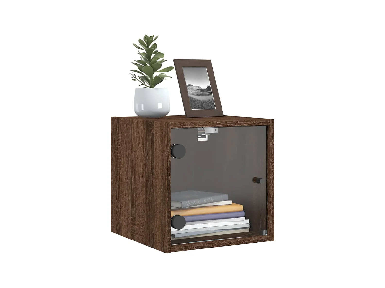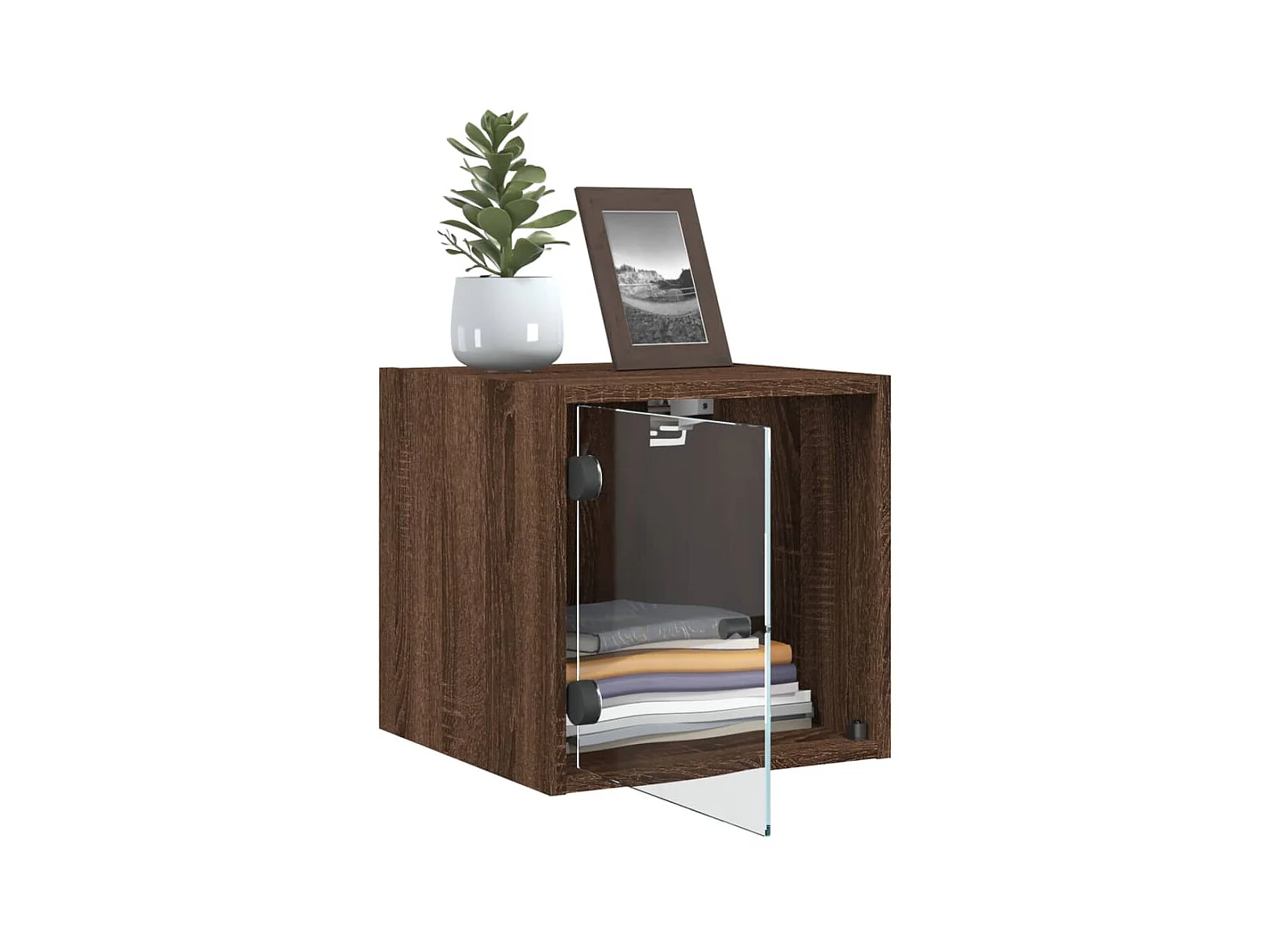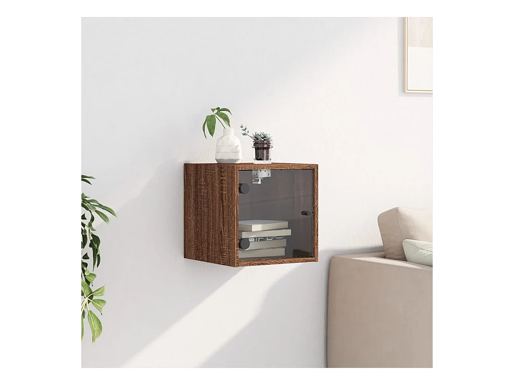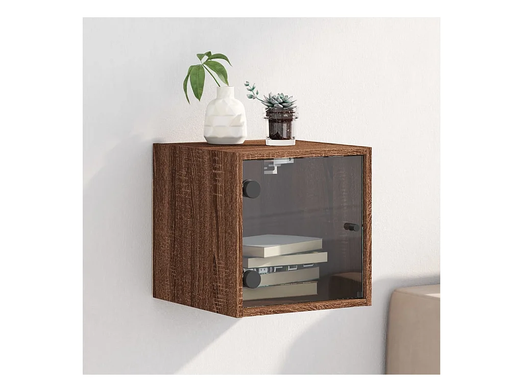 Nachttisch Nachtschrank mit Glastür Braun Eichen-Optik 35x37x35 cm -RN91949