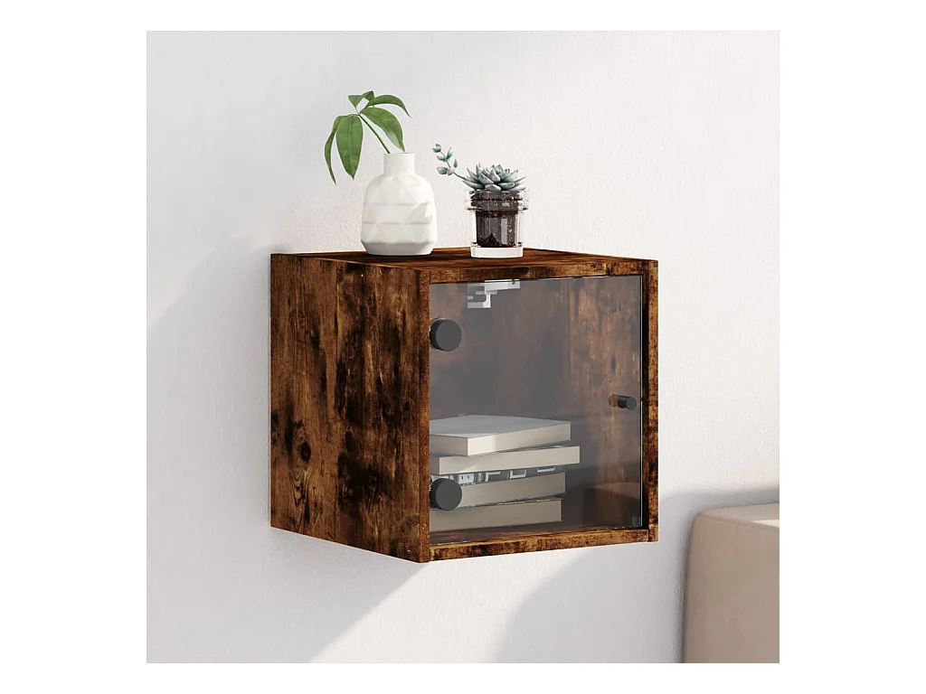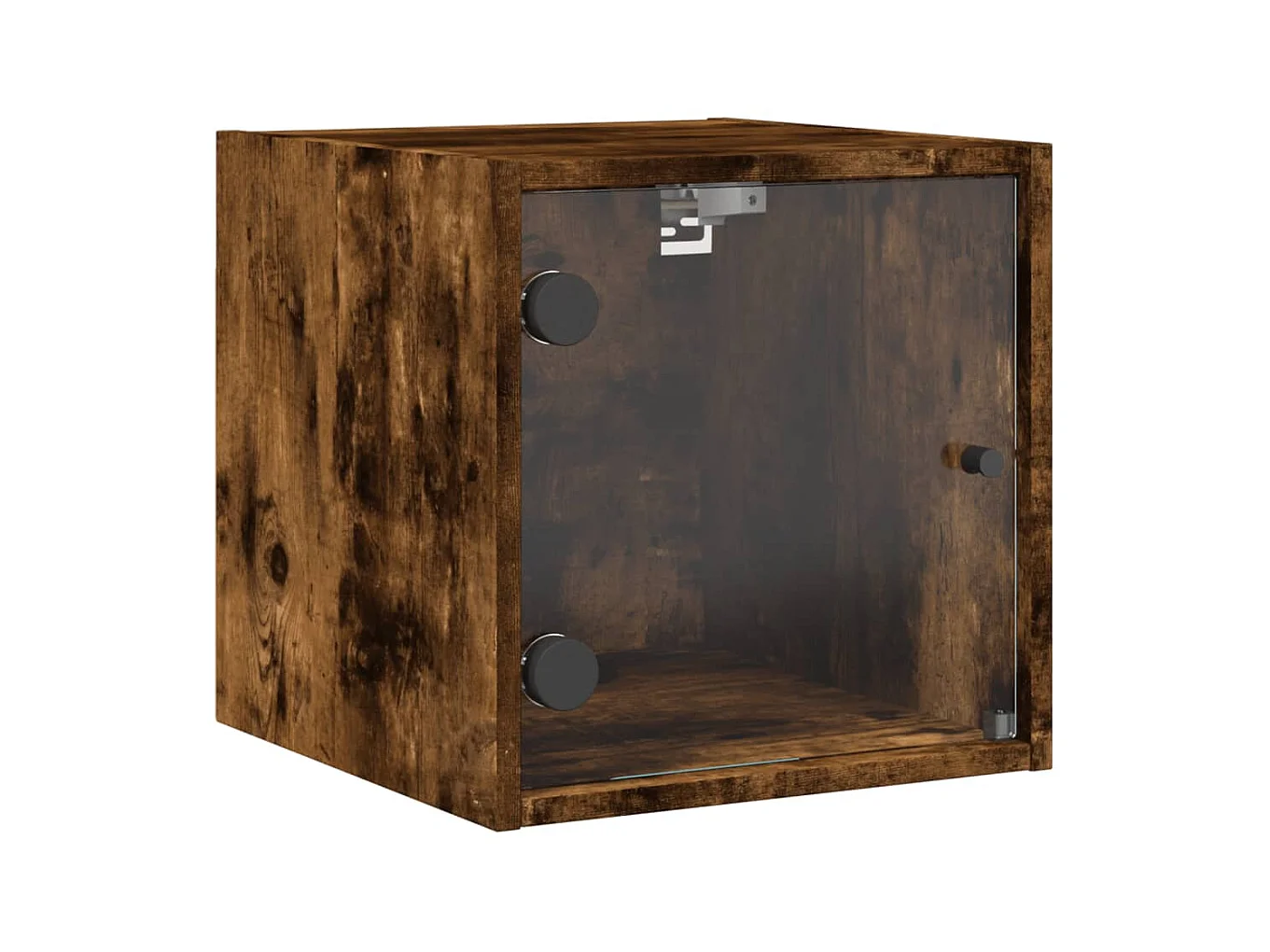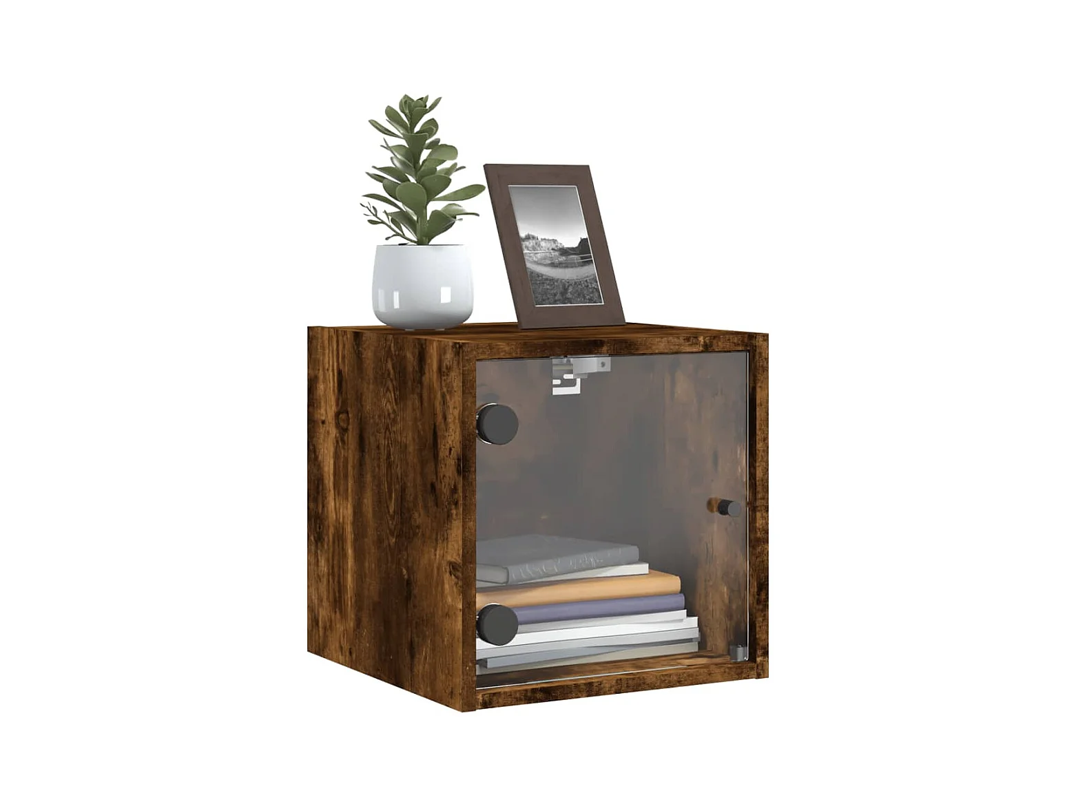 Nachttisch Nachtschrank mit Glastür Räuchereiche 35x37x35 cm -RN80549